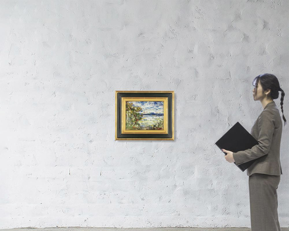 1933年 厚紙に油彩 28.2×37.2cm サイン有 画面数ヶ所にヒビ 額付