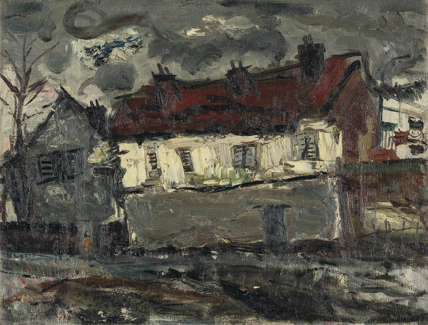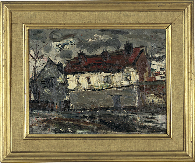 キャンバスに油彩 P10号 サイン有 画面数ヶ所にヒビ、修復 額付
