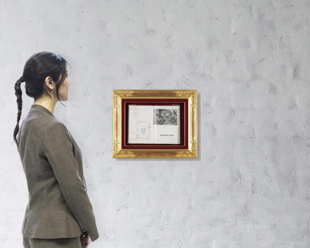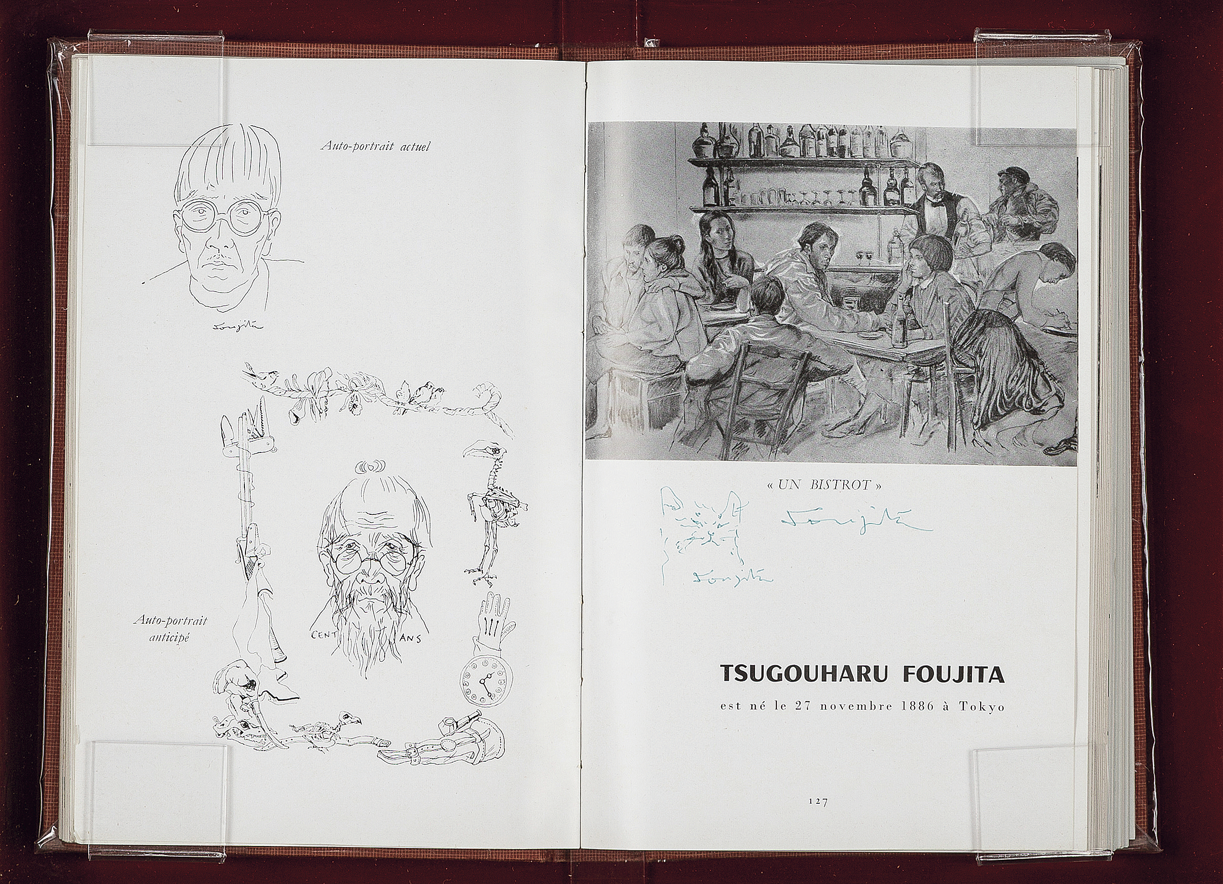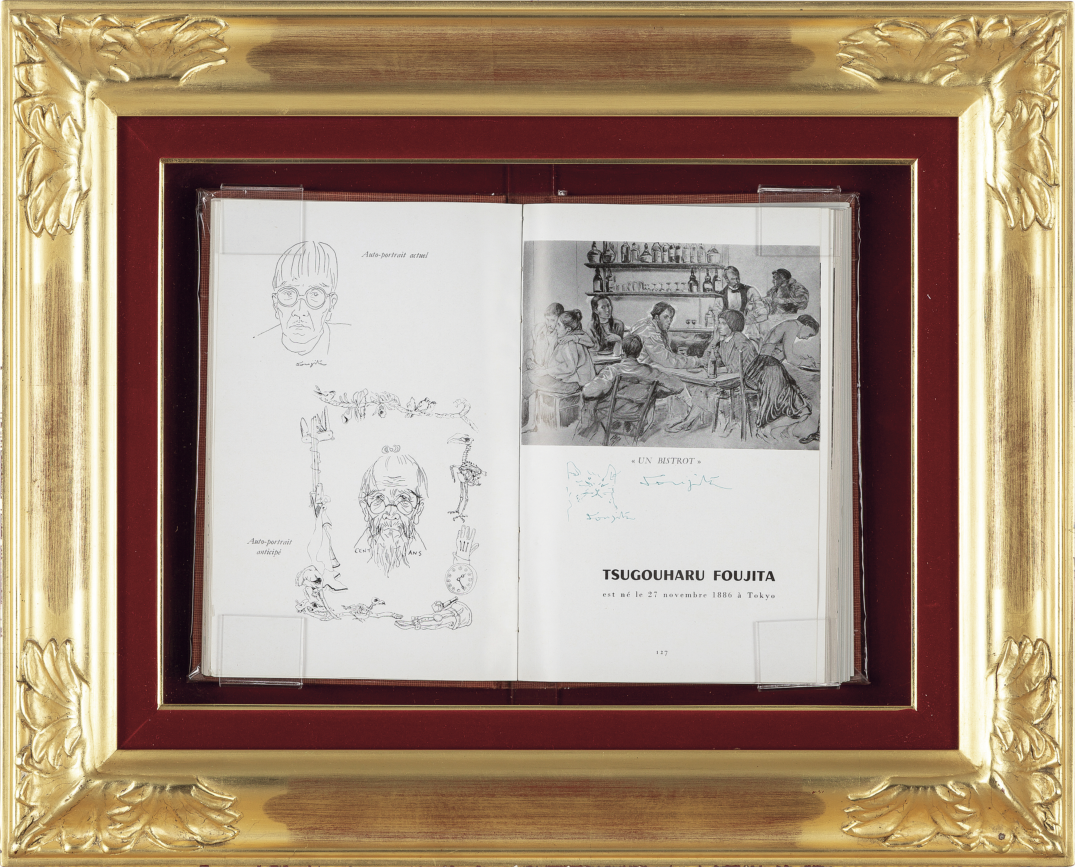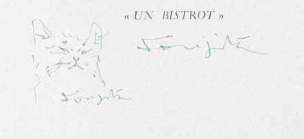「les parisiennes: Peintres témoins de leur temps, VII」(Musée Galliéra刊、1958年)に藤田嗣治によるドローイング 紙にペン 22×14.2(本)cm サイン有 作品全体に薄いヤケ、数ヶ所にシミ、わずかなコスレ 額付
