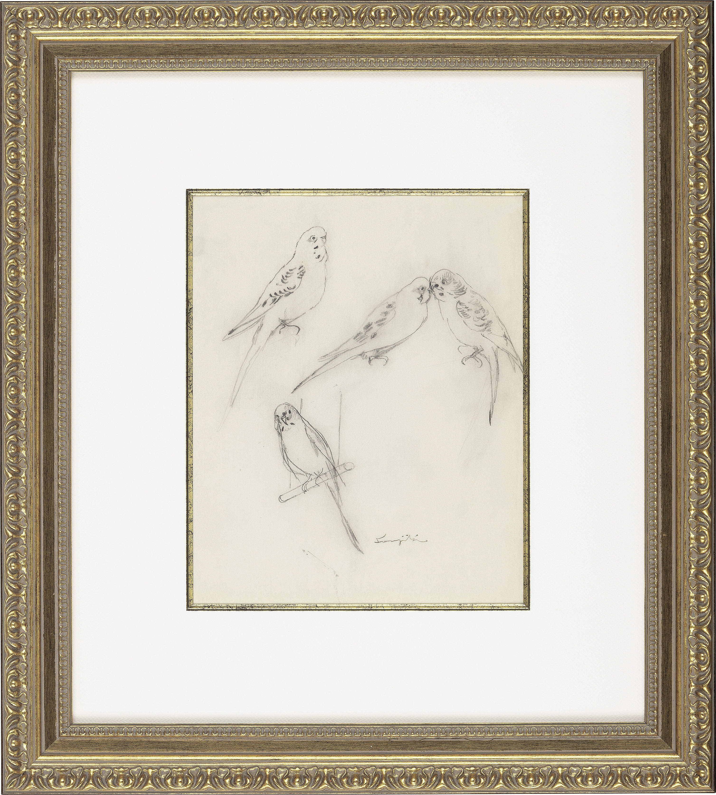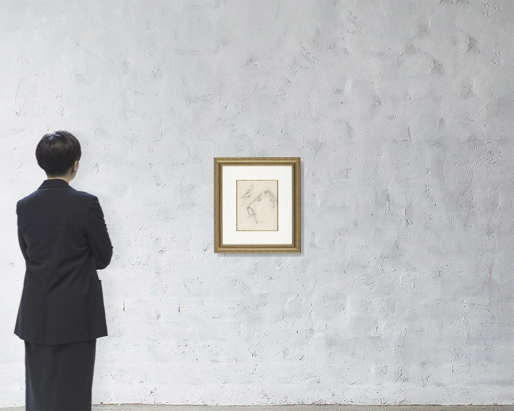 紙に鉛筆 32.4×25.1(紙)cm サイン有 画面全体に薄いヤケ、数ヶ所にシワ、わずかなヨゴレ、縁沿い数ヶ所にヤブレ、紙の欠損 額付
