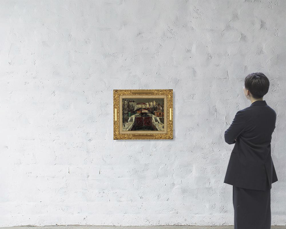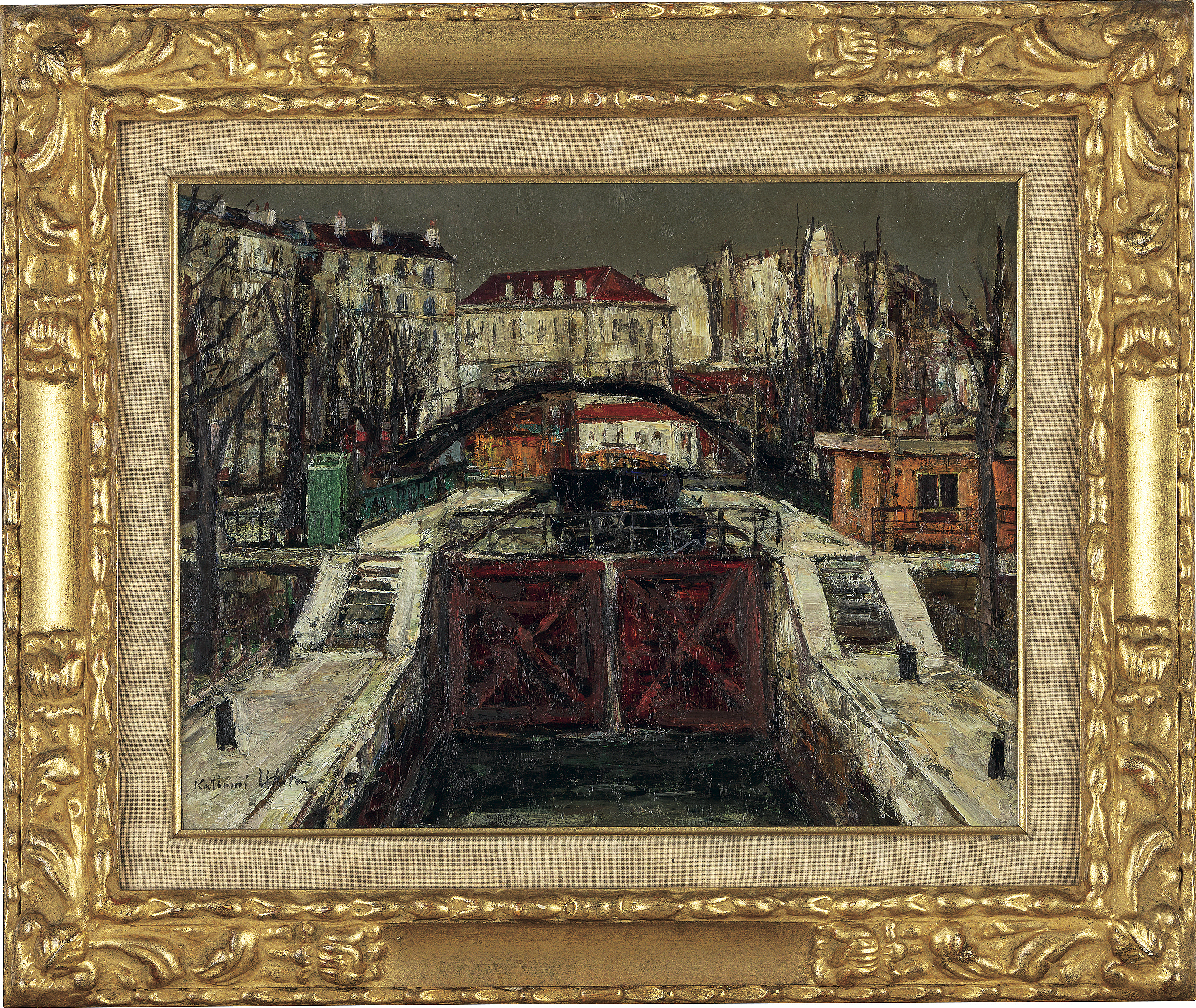 キャンバスに油彩 F6号 サイン有 キャンバス裏と額裏にもサイン、タイトル 画面数ヶ所に浅いヒビ 額付