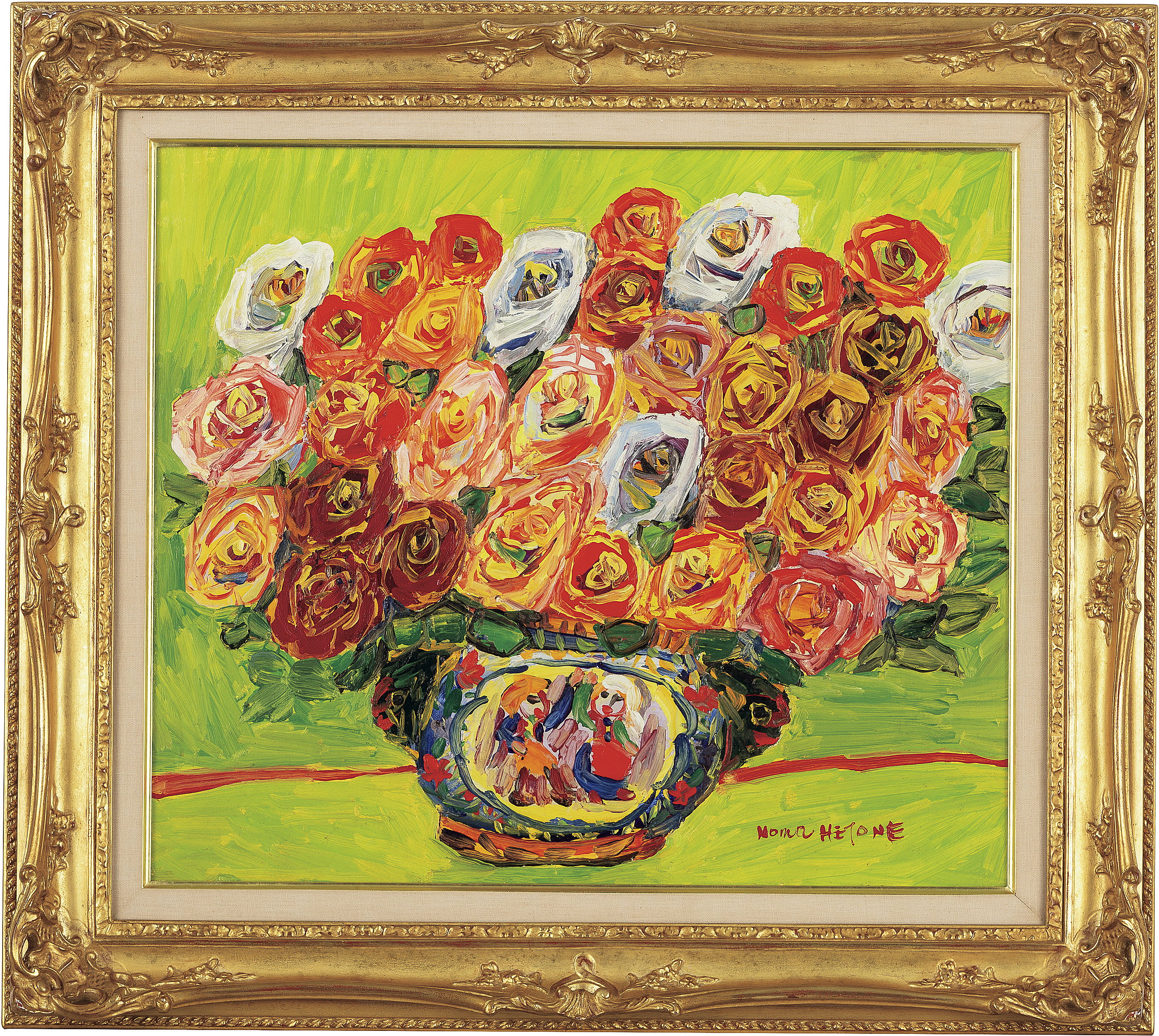 キャンバスに油彩 45.7×52.8cm(F10号) サイン有 キャンバス裏木枠にもサイン、タイトル 画面数ヶ所にシミ、ヒビ 額付