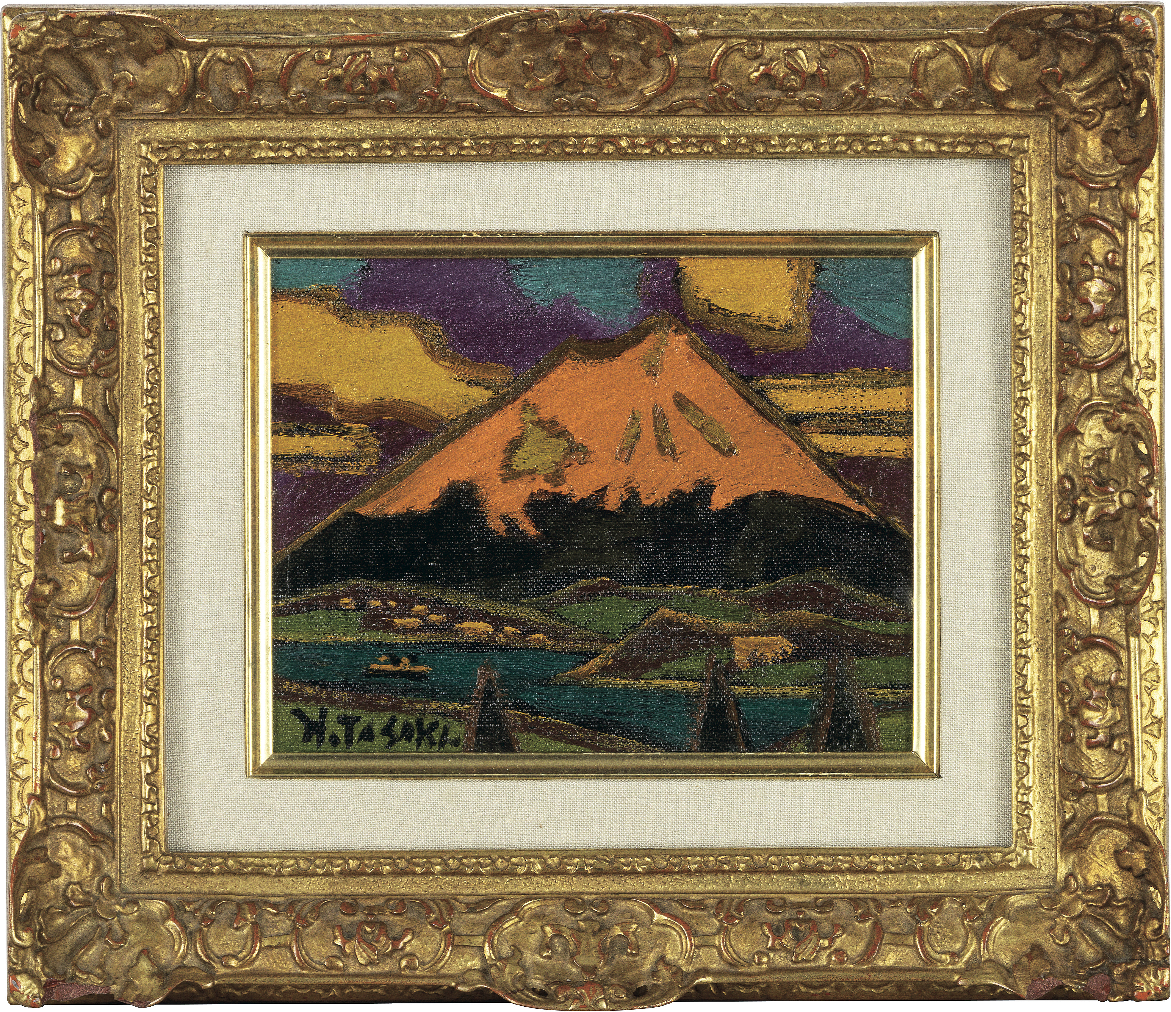キャンバスに油彩 F0号 サイン有 キャンバス裏木枠にもサイン、タイトル 画面数ヶ所にわずかな絵具の縮み 額付