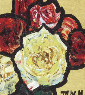 金地絹本色紙に油彩 27×24.2(色紙)cm サイン有 パネルによる裏打ち 画面所々にヒビ、数ヶ所に絵具の浮き、絵具の変質、縁沿い数ヶ所に剥落 額付