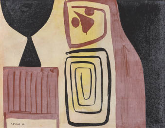 1966年 キャンバスに油彩 F50号 サイン有 「ギャルリーためなが」シール 画面所々にシミ、赤色部分に変色 額付*
