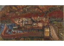 キャンバスに油彩 F20号 サイン有 キャンバス裏木枠にもサイン、タイトル 画面所々に絵具の縮み、数ヶ所に点状のシミ、1ヶ所に小さな剥落 額付
