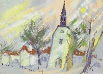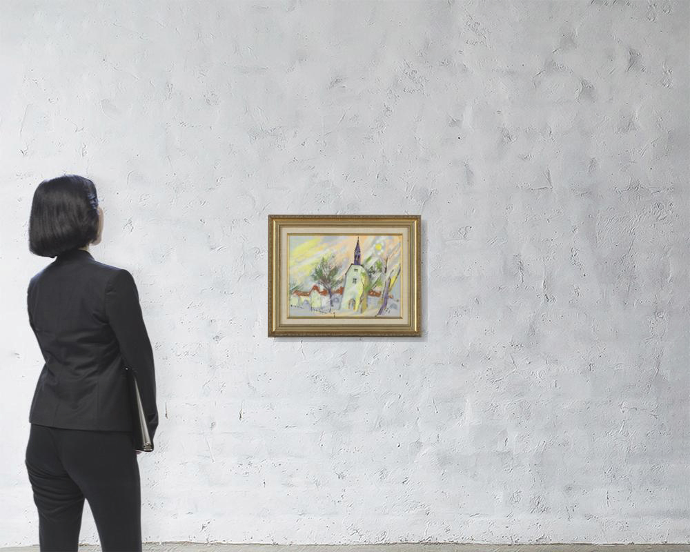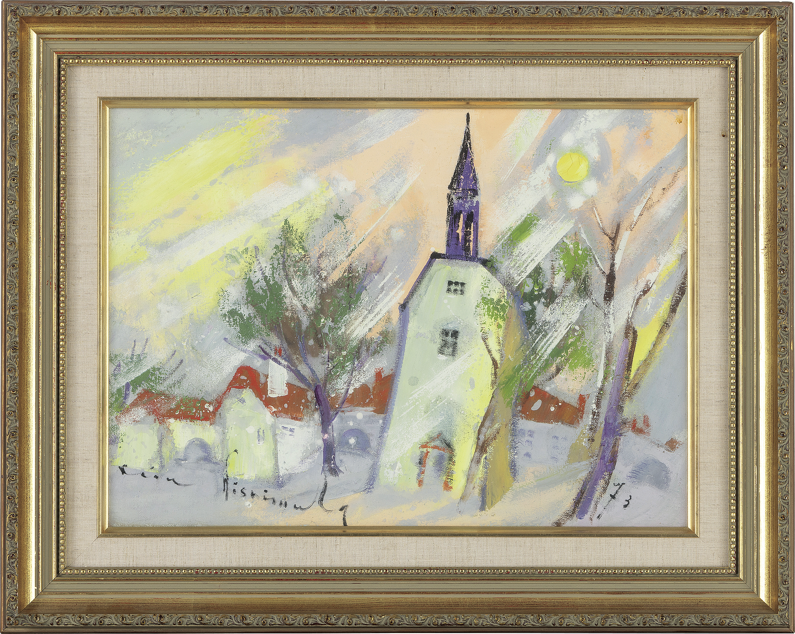 1973年 キャンバスに油彩 P8号 サイン有 キャンバス裏にもサイン、タイトル 画面数ヶ所にヒビ 額付