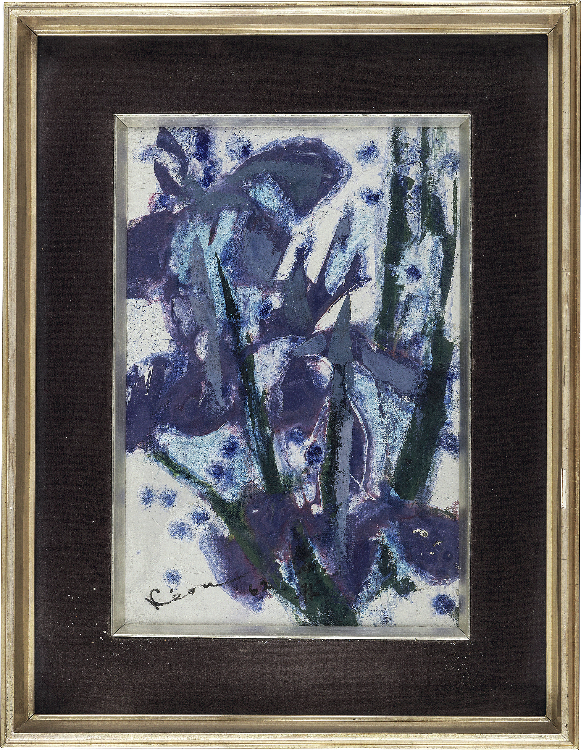 1962年 キャンバスに油彩 32×21.5cm サイン有 キャンバス裏にもサイン、タイトル 画面数ヶ所にヒビ もう1点は【木蓮】(1978年 F1号 額裏にもサイン 画面数ヶ所にヒビ、絵具の浮き、剥落 他は表題と同データ) 2点共額付