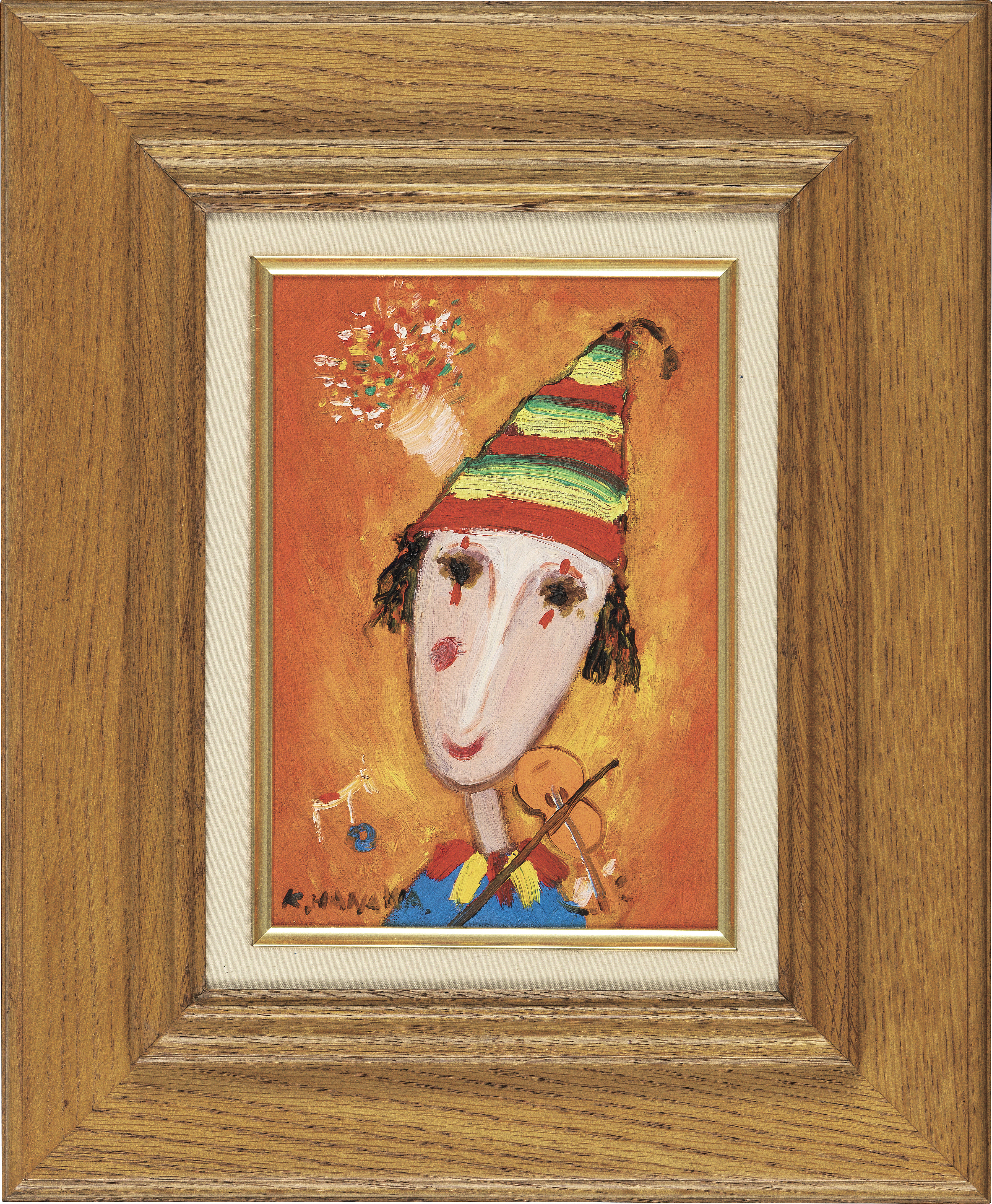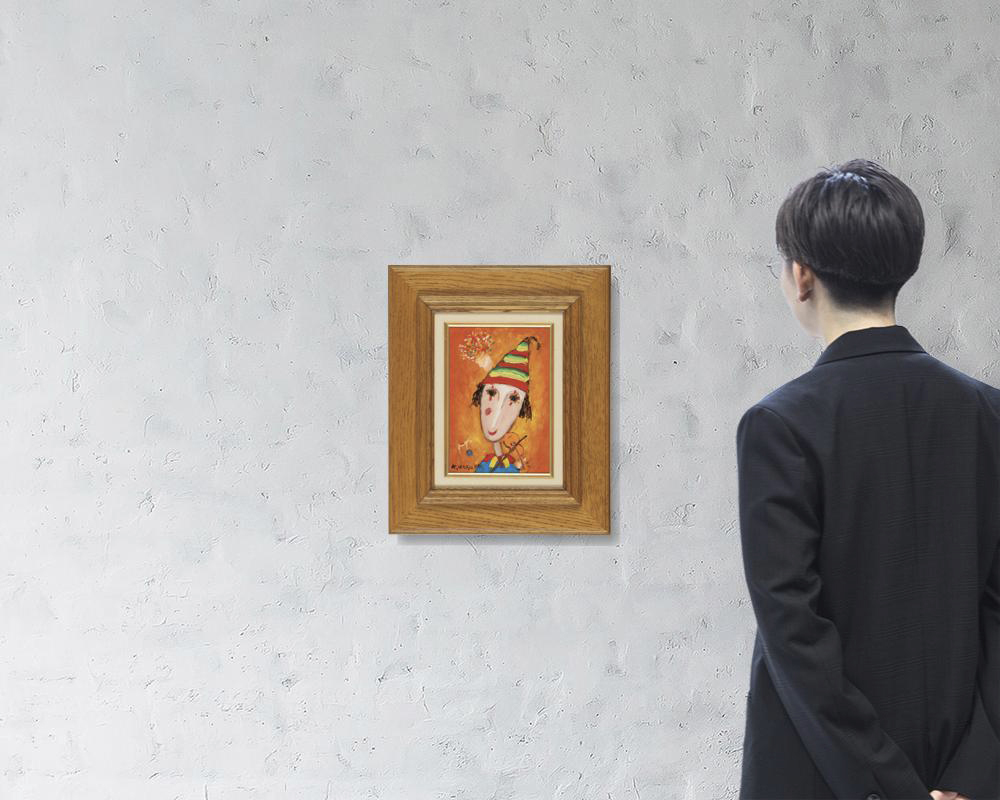 キャンバスに油彩 サムホール サイン有 キャンバス裏にもサイン、タイトル 画面数ヶ所に絵具の縮み 額付