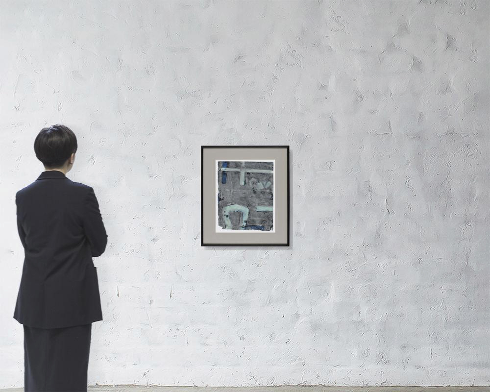 紙にミックストメディア 38×30(紙)cm サイン有 額付*