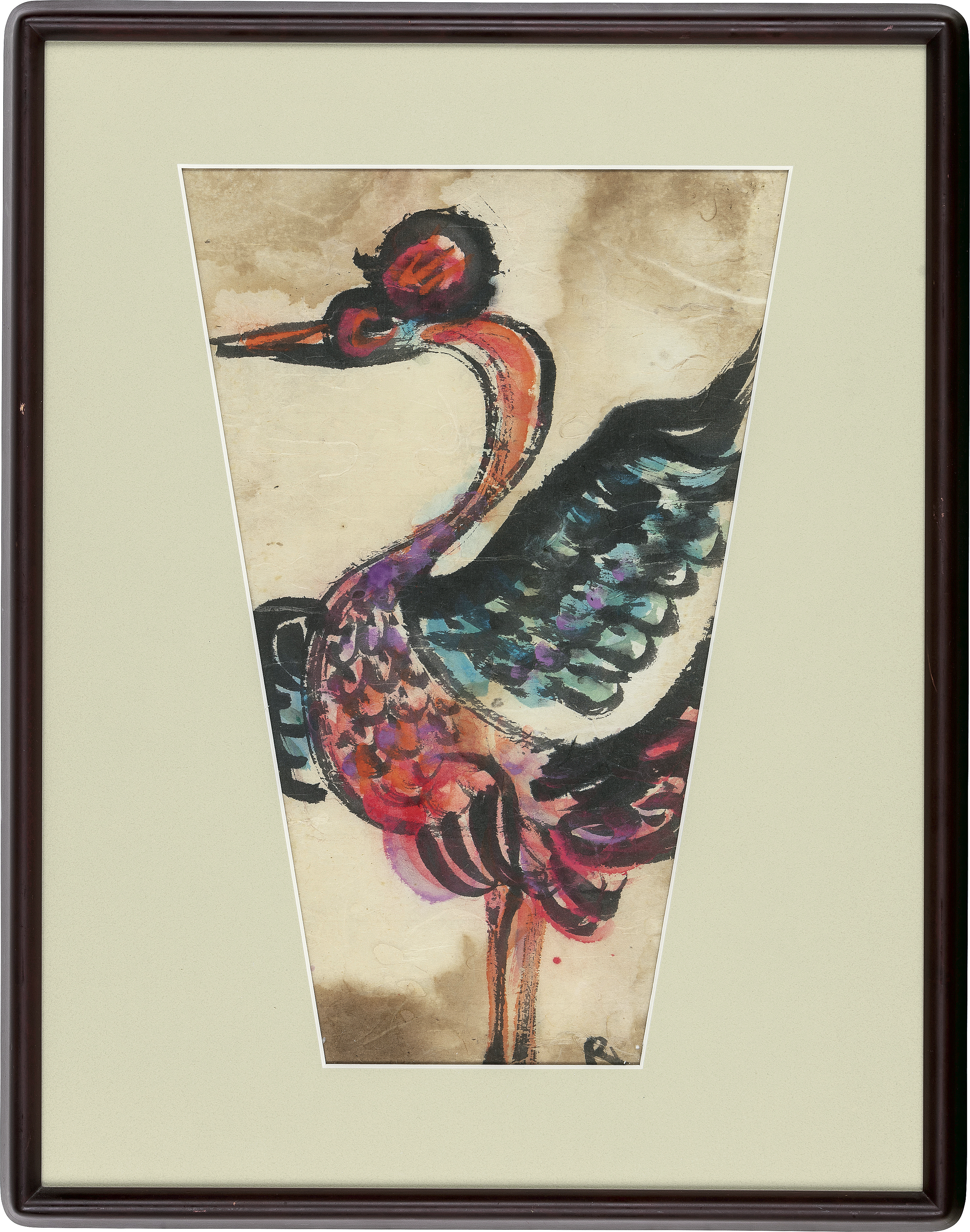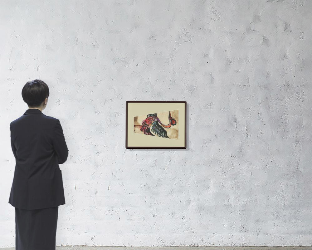 和紙にアクリル・ガラス 39×26.5(額窓)cm サイン有 画面全体に薄いヤケ、数ヶ所にシミ、紙の欠損 額付*