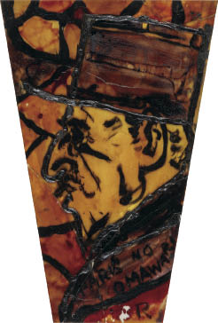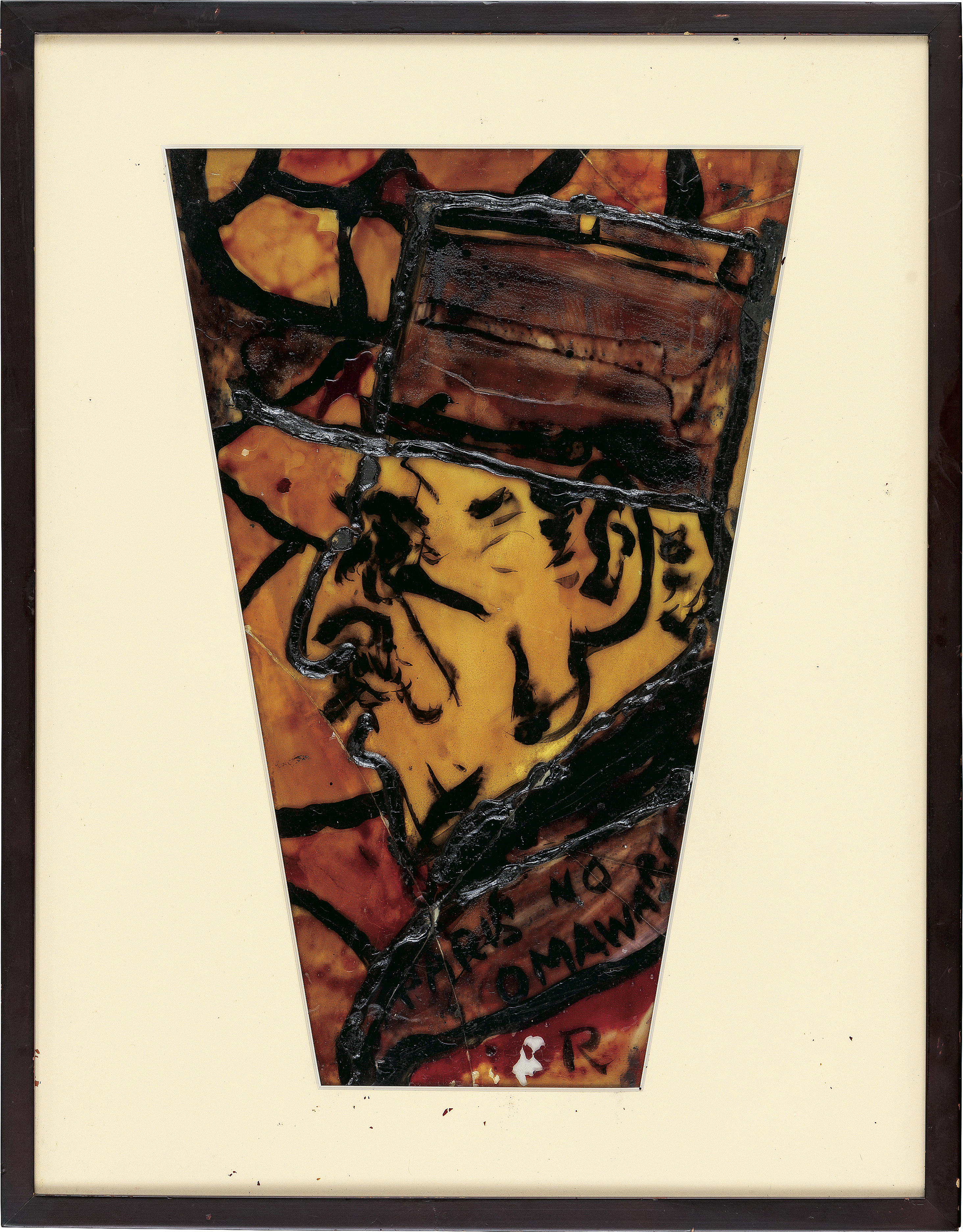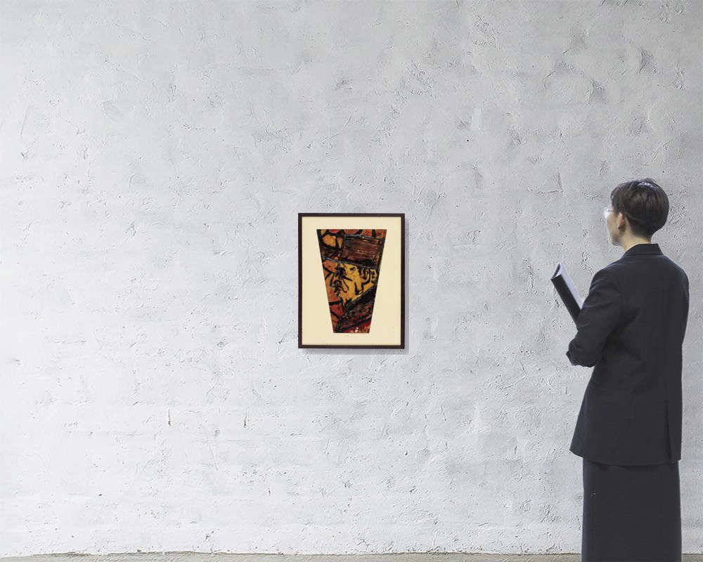 ガラスにアクリル 40.4×27.3(額窓)cm サイン有 画面数ヶ所にヒビ、付着物、剥落、ガラスのワレ 額付*