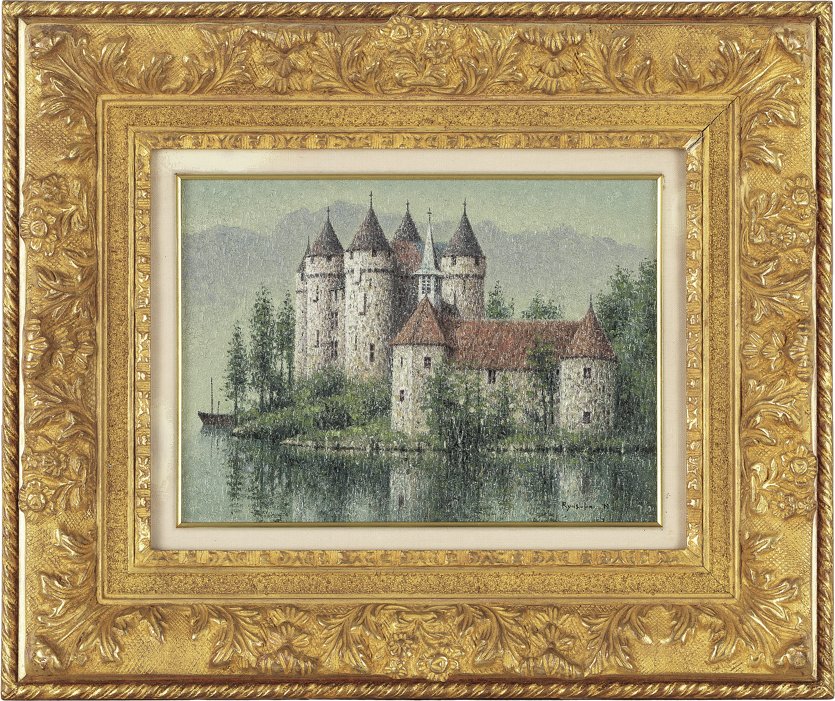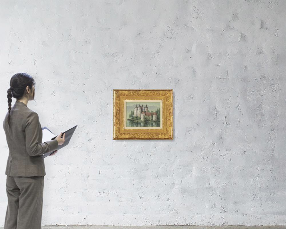 キャンバスに油彩 F4号 サイン有 額付