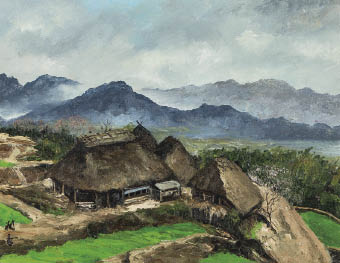 キャンバスに油彩 31.7×41cm(F6号) サイン有 キャンバス裏木枠にもサイン、タイトル 共シール 画面数ヶ所に浅いヒビ、縁沿い数ヶ所に剥落 額付