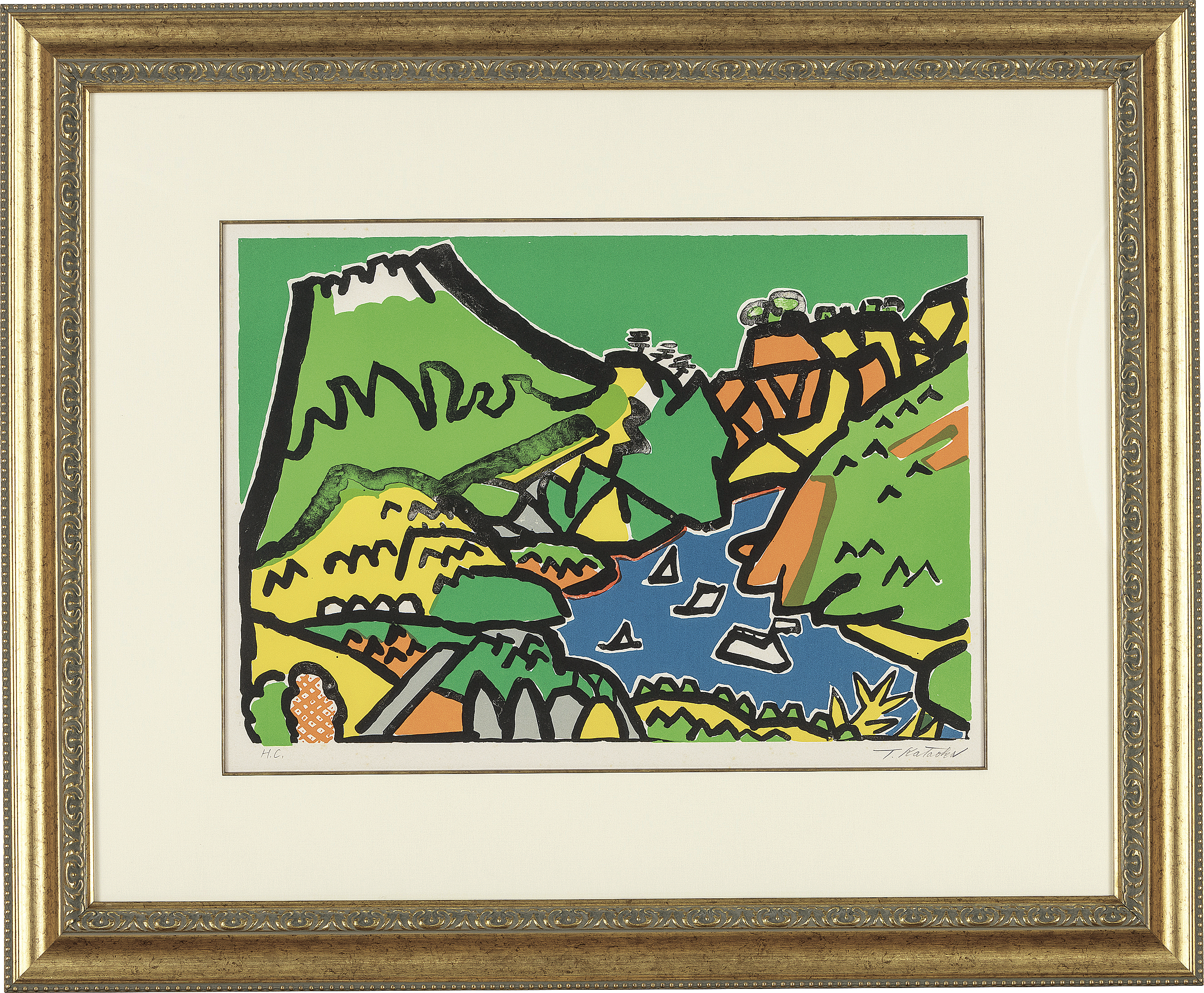 阿部出版No.14 1972年 リトグラフ 36×52cm サイン有 ed.HC シートサイズ 53×69.9cm(フルマージン) シート全体にヤケ 版面数ヶ所にシミ、1ヶ所に付着物 マージン及び裏面所々にシミ、数ヶ所にシワ 額付