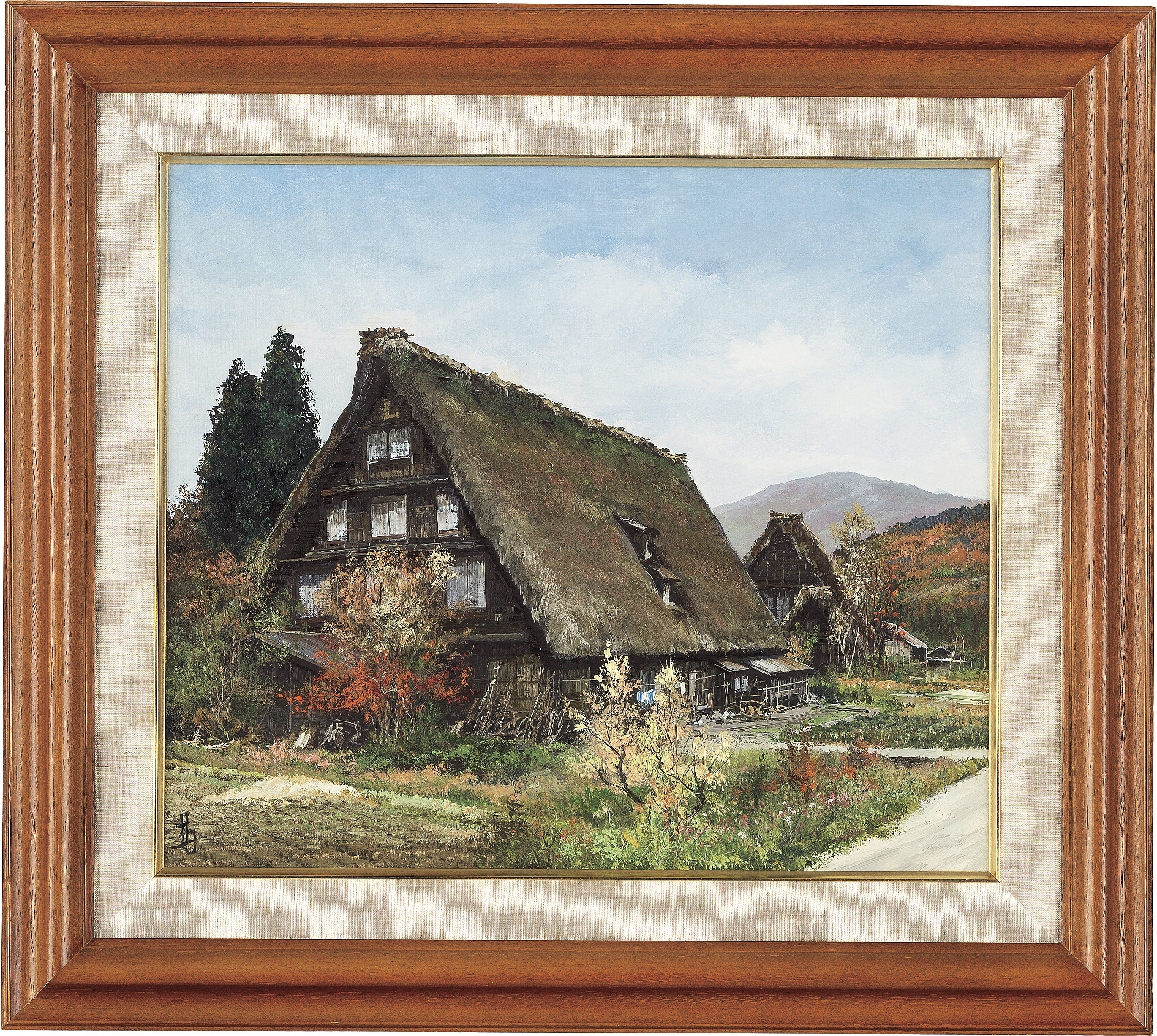 キャンバスに油彩 F10号 サイン有 キャンバス裏にもサイン、タイトル 画面数ヶ所に絵具の縮み 額付