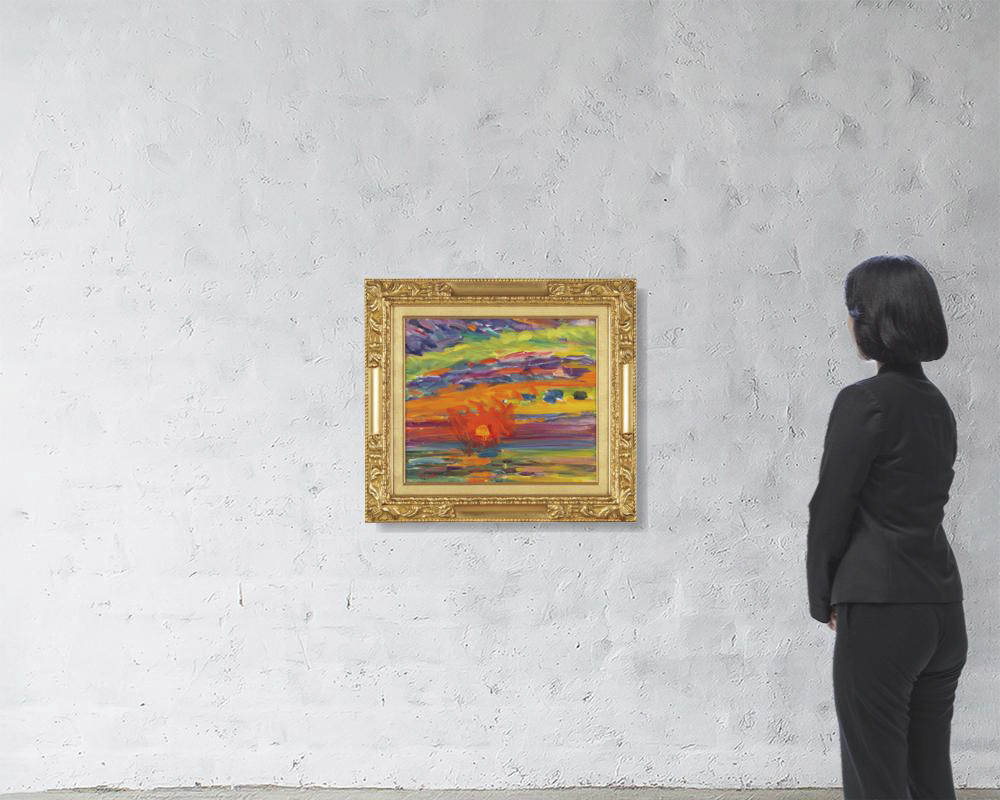 キャンバスに油彩 F10号 サイン有 キャンバス裏木枠にもサイン、タイトル 共シール 画面数ヶ所にシミ 額付