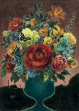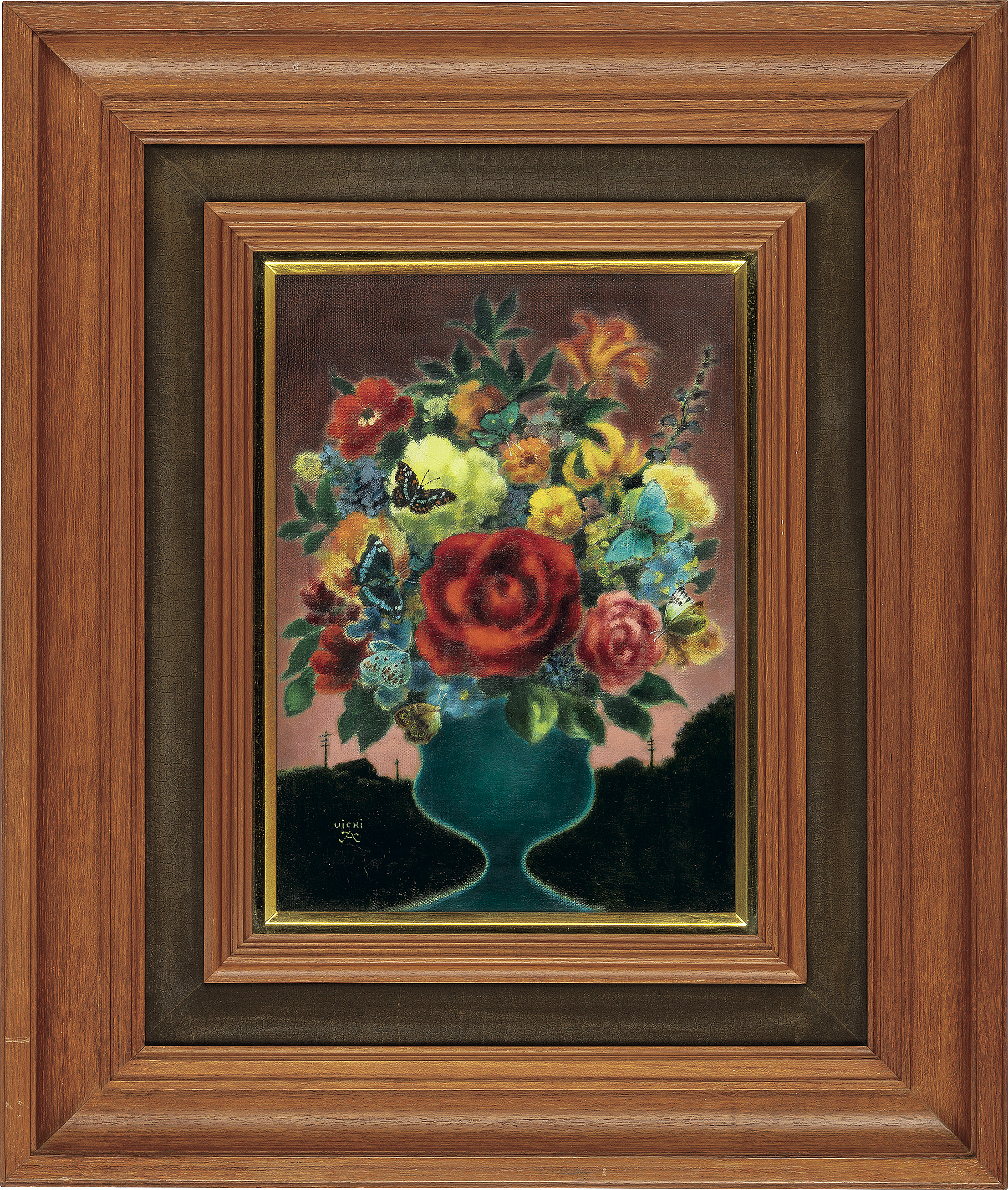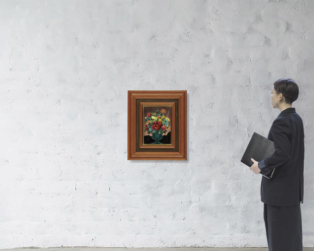 キャンバスに油彩 F4号 サイン有 キャンバス裏にもサイン、タイトル 「日動画廊」シール 画面数ヶ所に絵具の縮み、1ヶ所にヒビ 額付