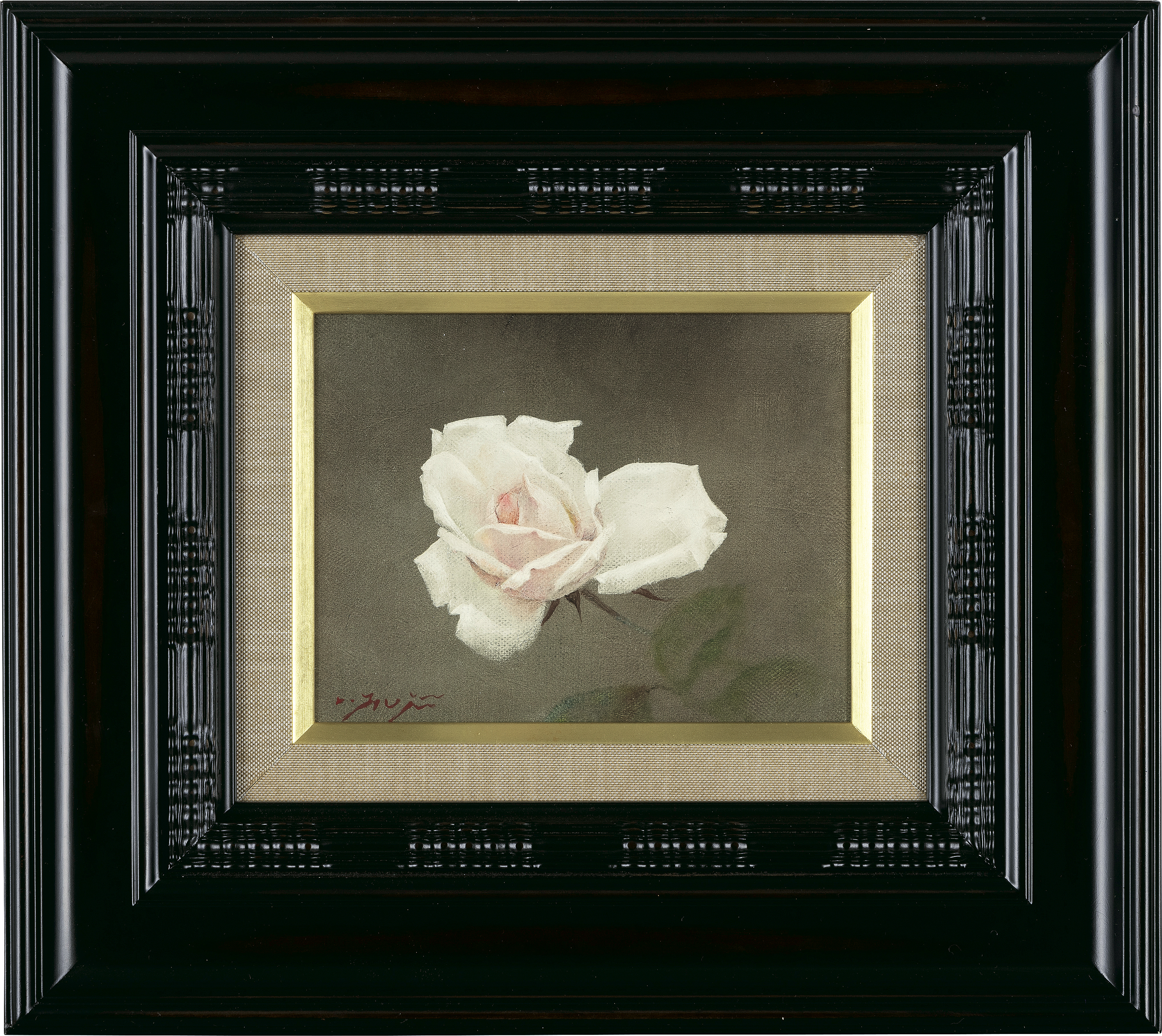 キャンバスに油彩 F0号 サイン有 キャンバス裏にもサイン、タイトル 額付