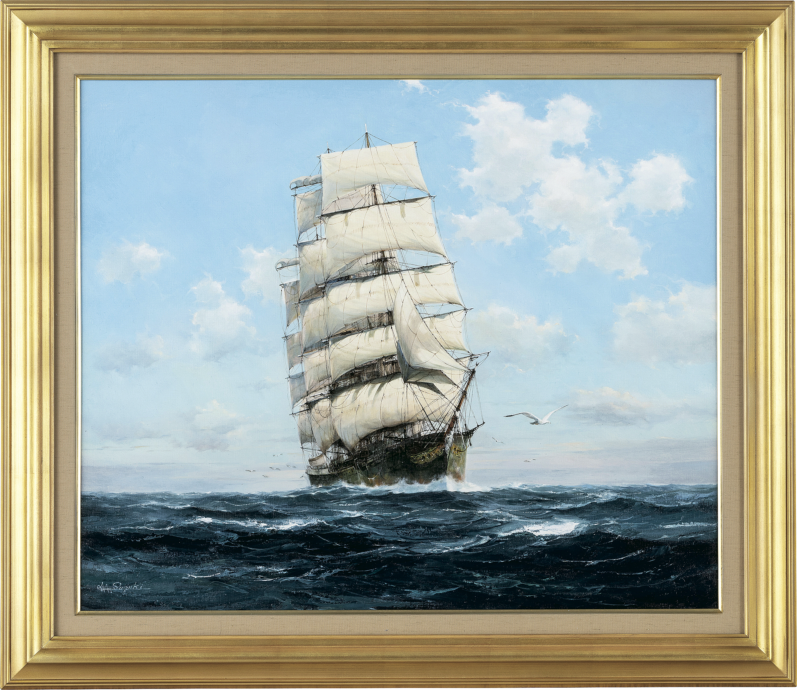 キャンバスに油彩 F20号 サイン有 キャンバス裏木枠に共シール 画面数ヶ所にヒビ 額付
