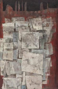 1957年 キャンバスに油彩 M40号 サイン有 キャンバス裏木枠にもサイン、タイトル、年記 「TOKYO GALLERY」シール 「赤穴宏画集出版記念展」(銀座洋協ホール、1982年)出展作品シール 画面数ヶ所にわずかな絵具の縮み 額付