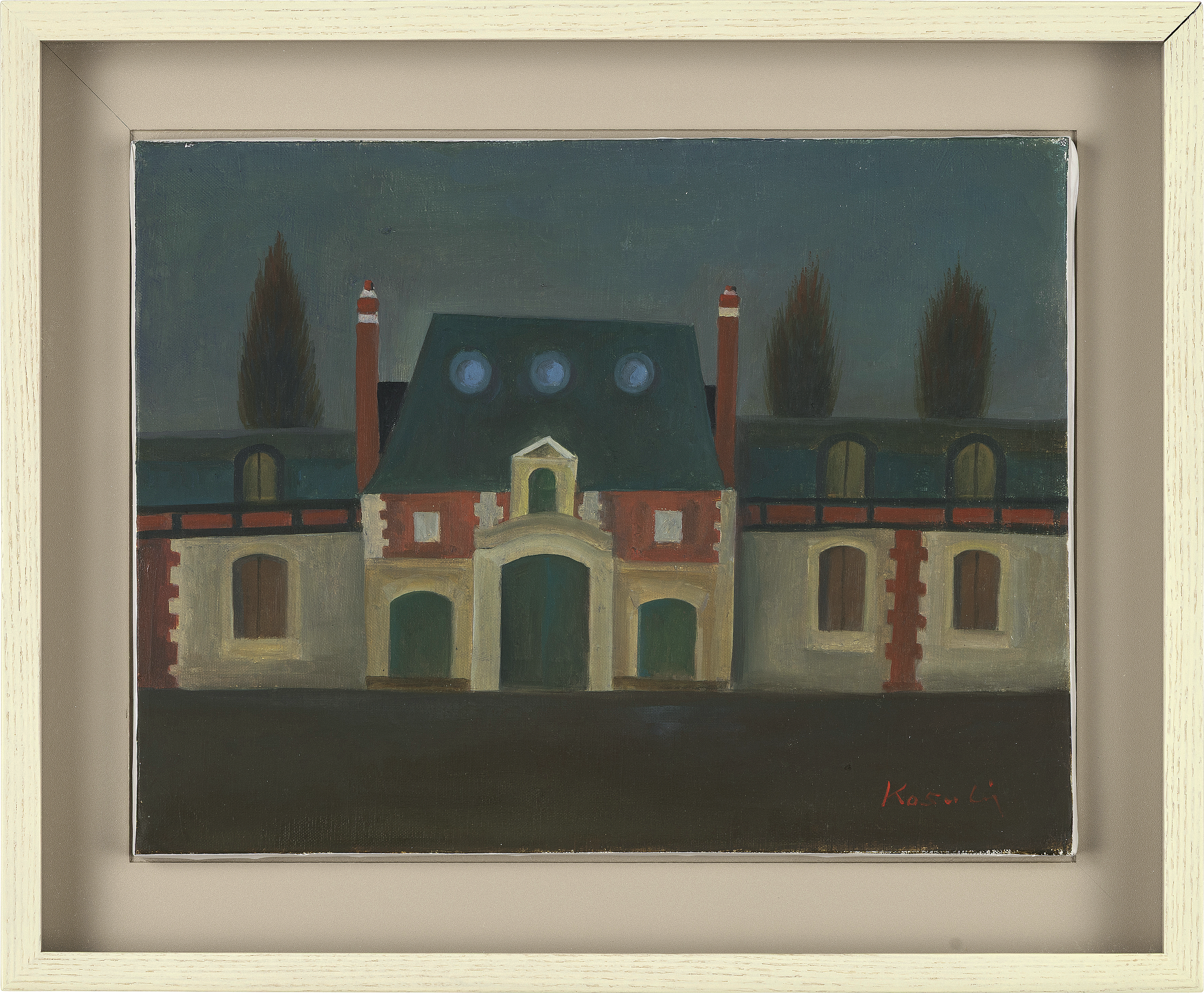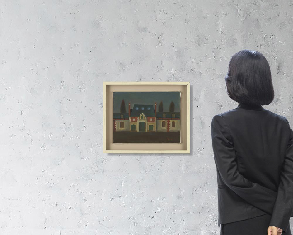 キャンバスに油彩 F5号 サイン有 画面縁沿い数ヶ所に小さな剥落、1ヶ所にヒビ 額付