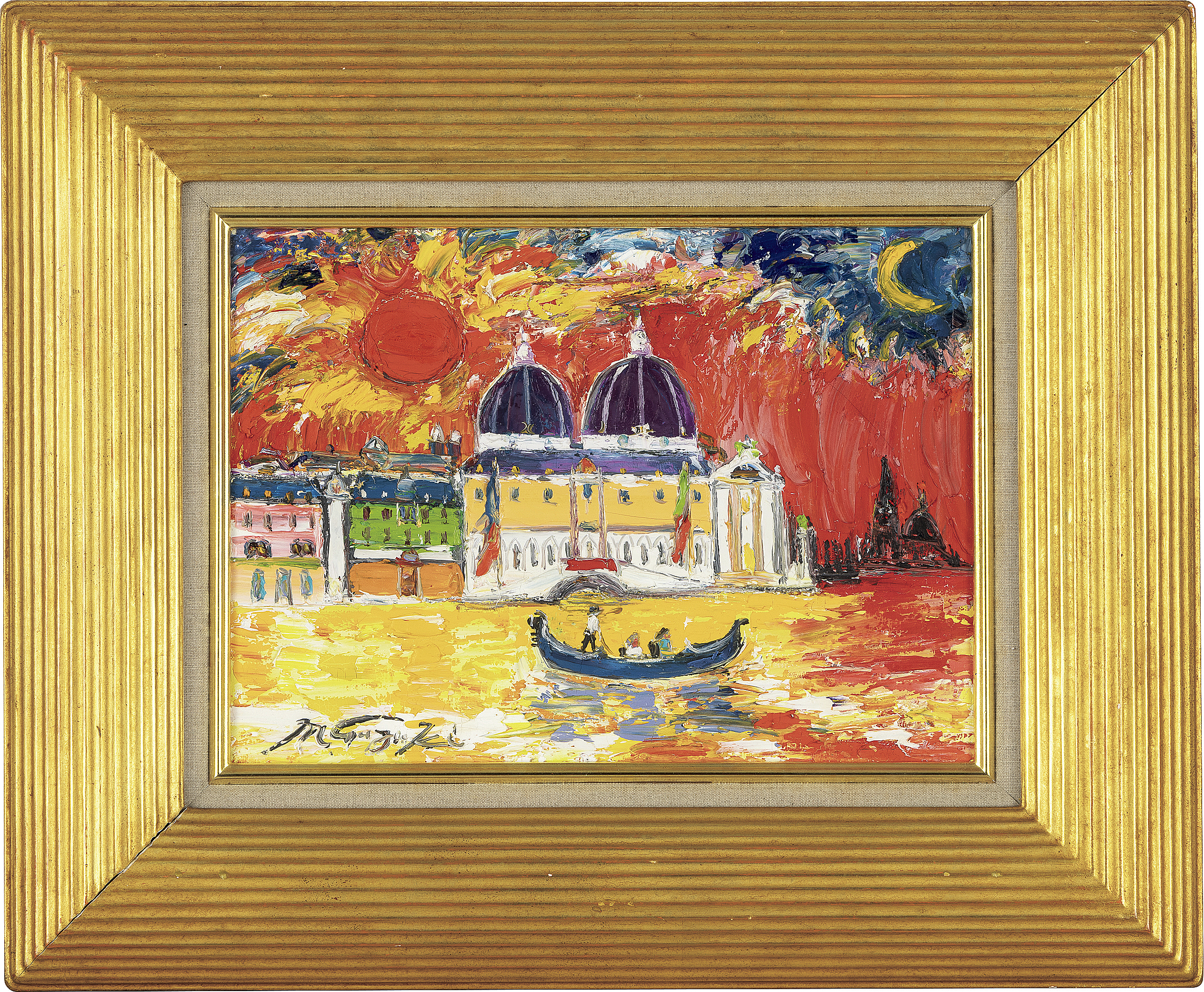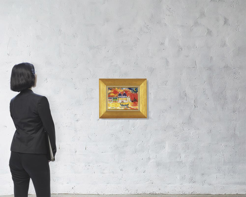 キャンバスに油彩 F4号 サイン有 キャンバス裏にもサイン、タイトル 画面所々にヒビ、数ヶ所に絵具の縮み、縁沿い数ヶ所に剥落 額付