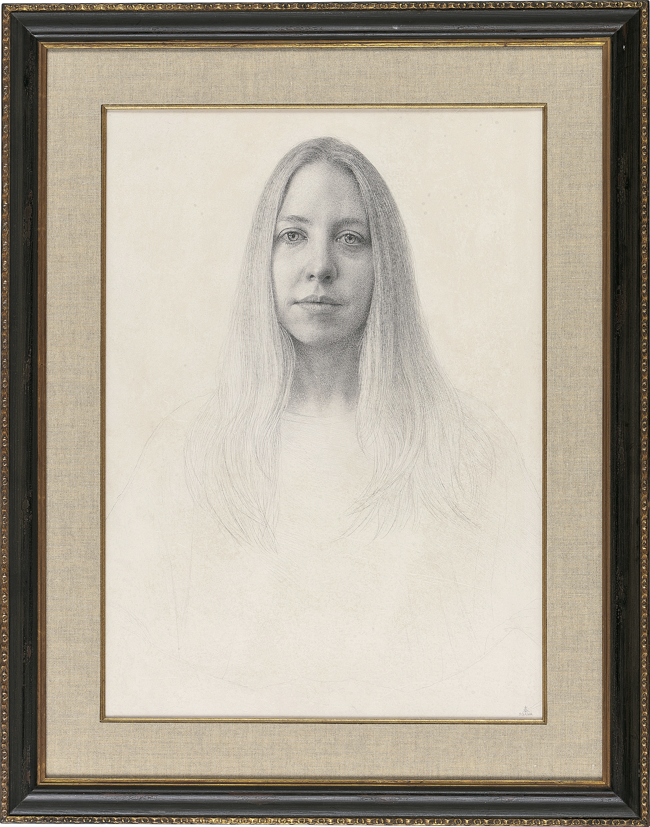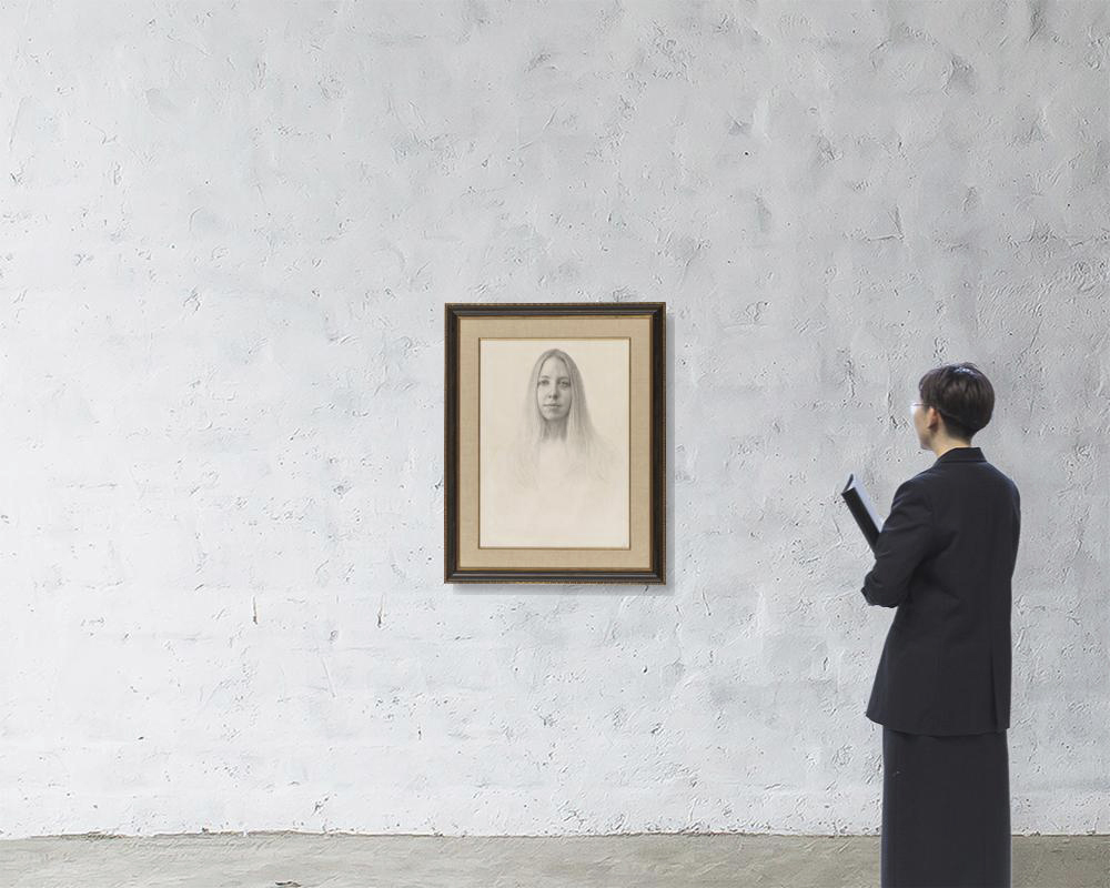 厚紙に鉛筆 75.3×53.4(紙)cm サイン有 ボードによる裏打ち 画面全体に薄いヤケ、所々にシミ 額付