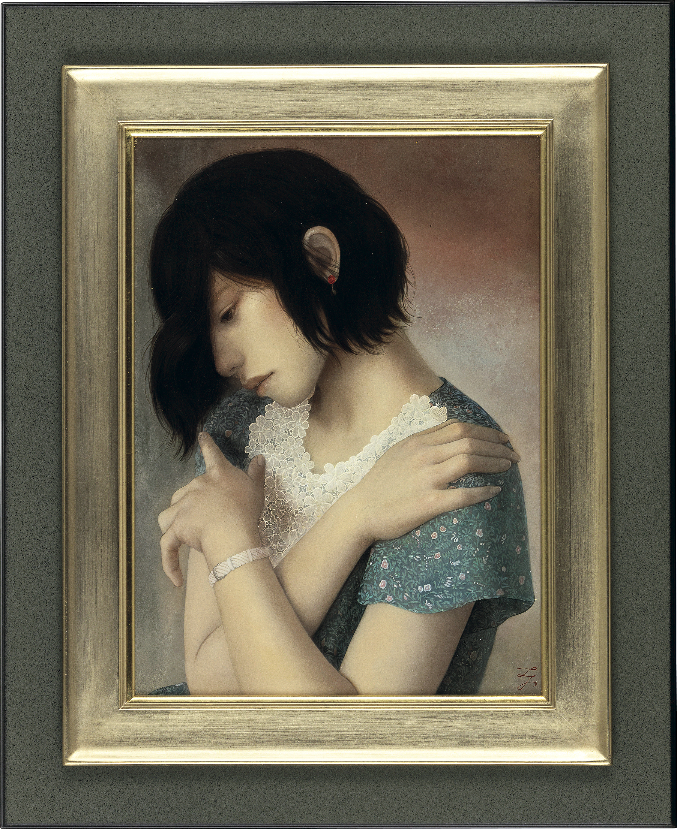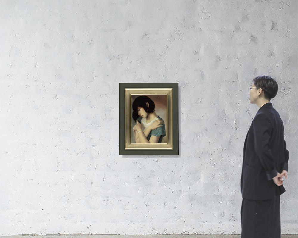 2015年 パネルに貼付した綿布に油彩 P8号 サイン有 パネル裏に共シール 額付