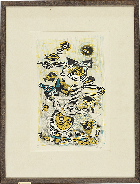 1956年 リトグラフ 38.5×24.2cm サイン有 ed.12 版面及びマージンにヤケ 額付*