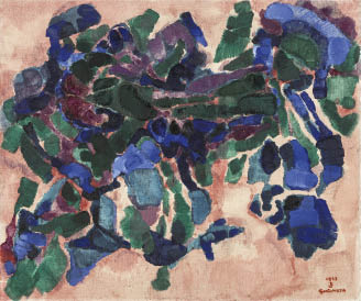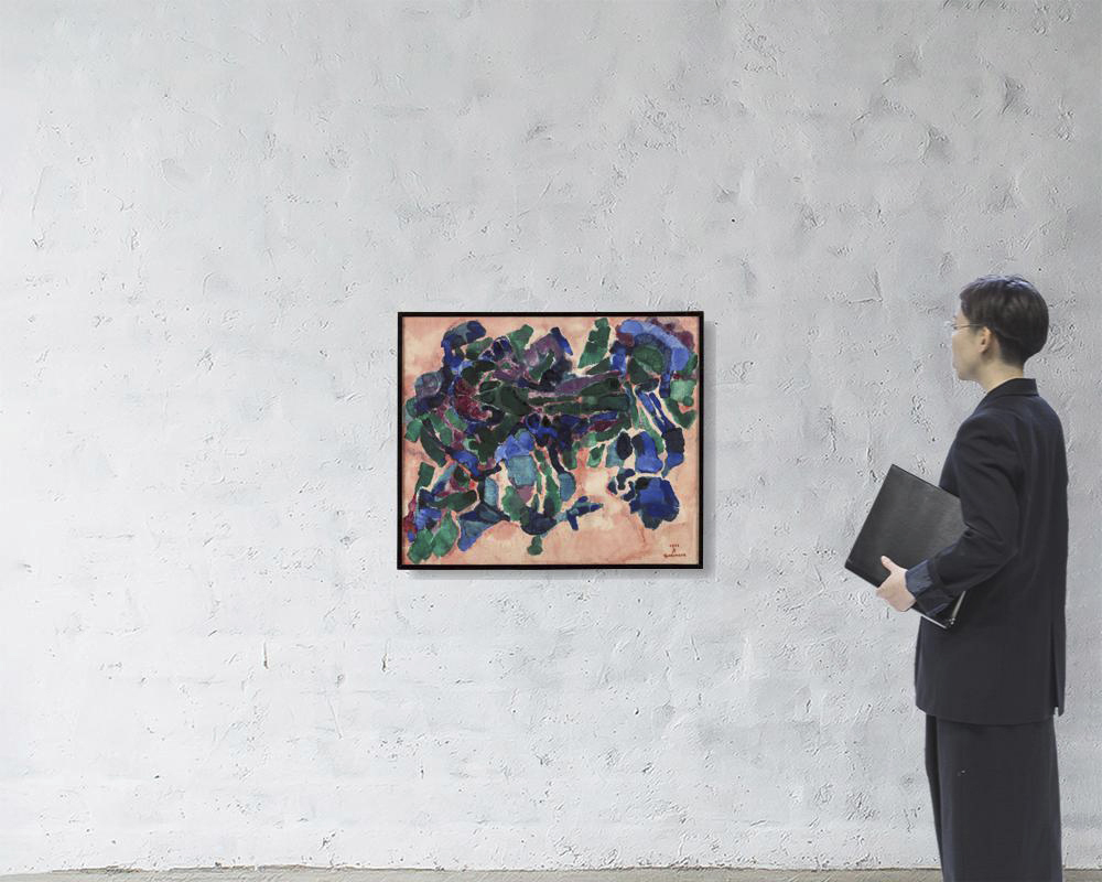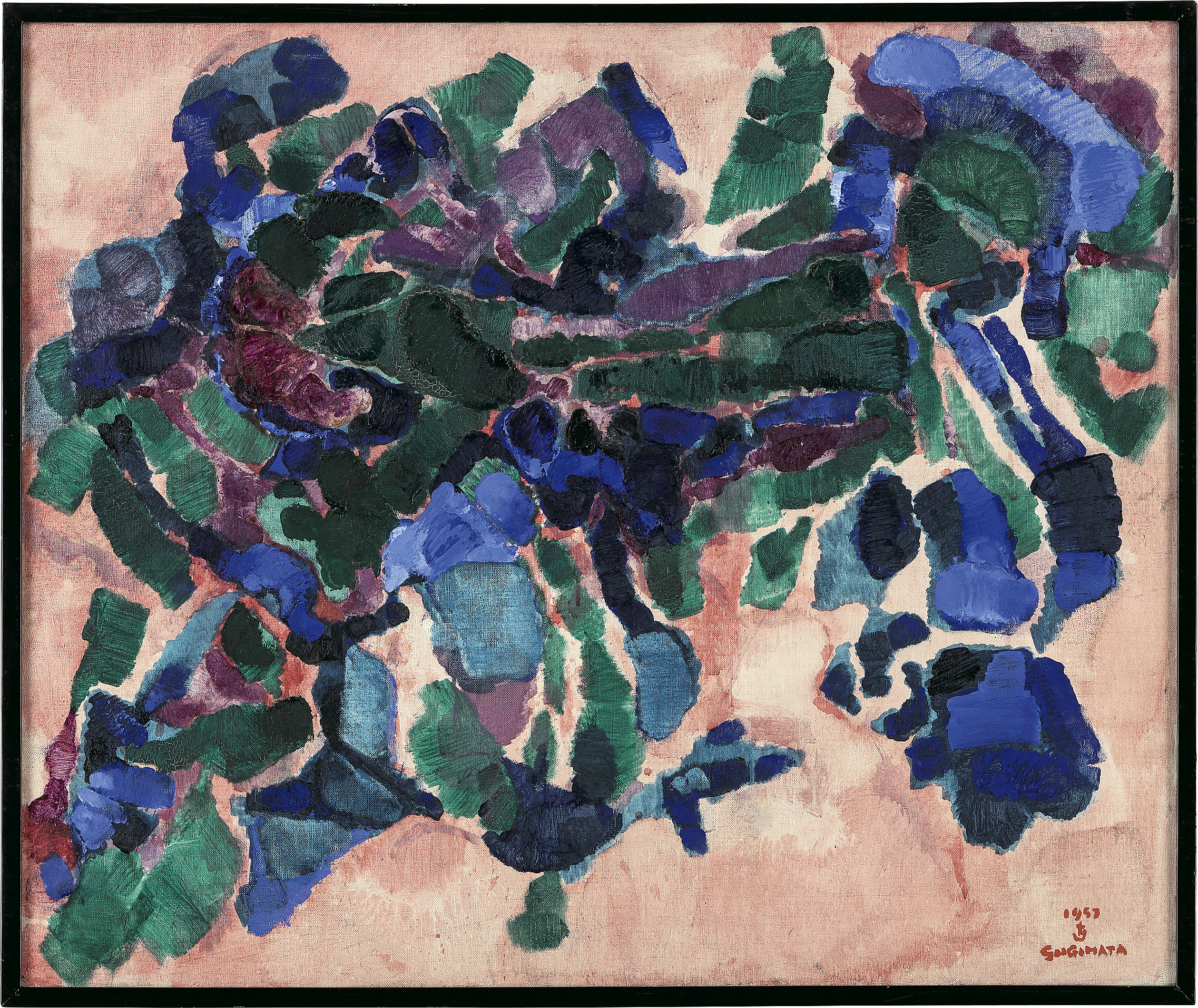1957年 キャンバスに油彩 60×72(額窓)cm サイン有 「大阪フォルム画廊」シール 画面所々に絵具の縮み、ヒビ、数ヶ所に小さな剥落 額付*
