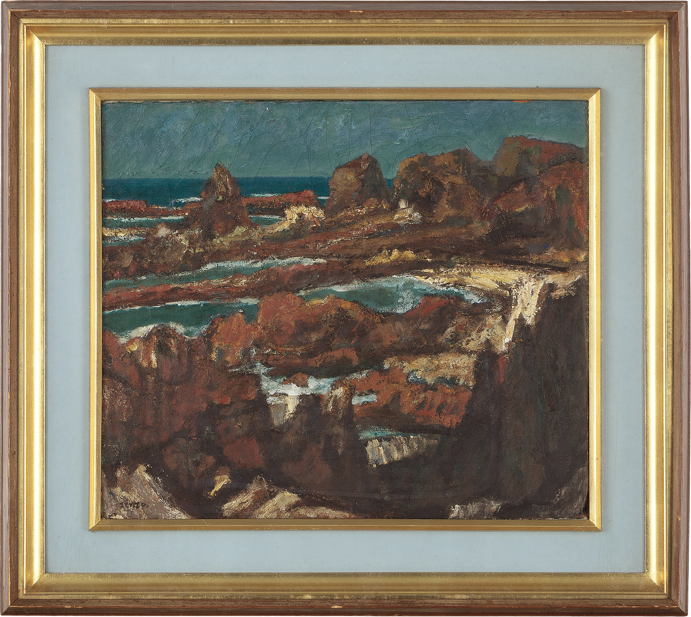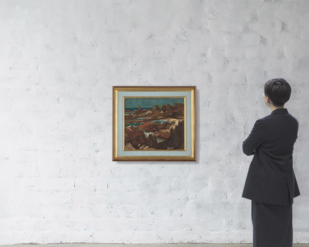 キャンバスに油彩 F10号 サイン有 キャンバス裏にもサイン、タイトル 画面数ヶ所にヒビ、絵具の浮き、剥落、縁沿い数ヶ所にヨゴレ 額付