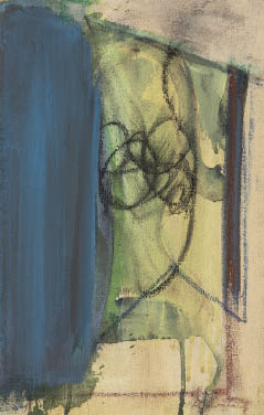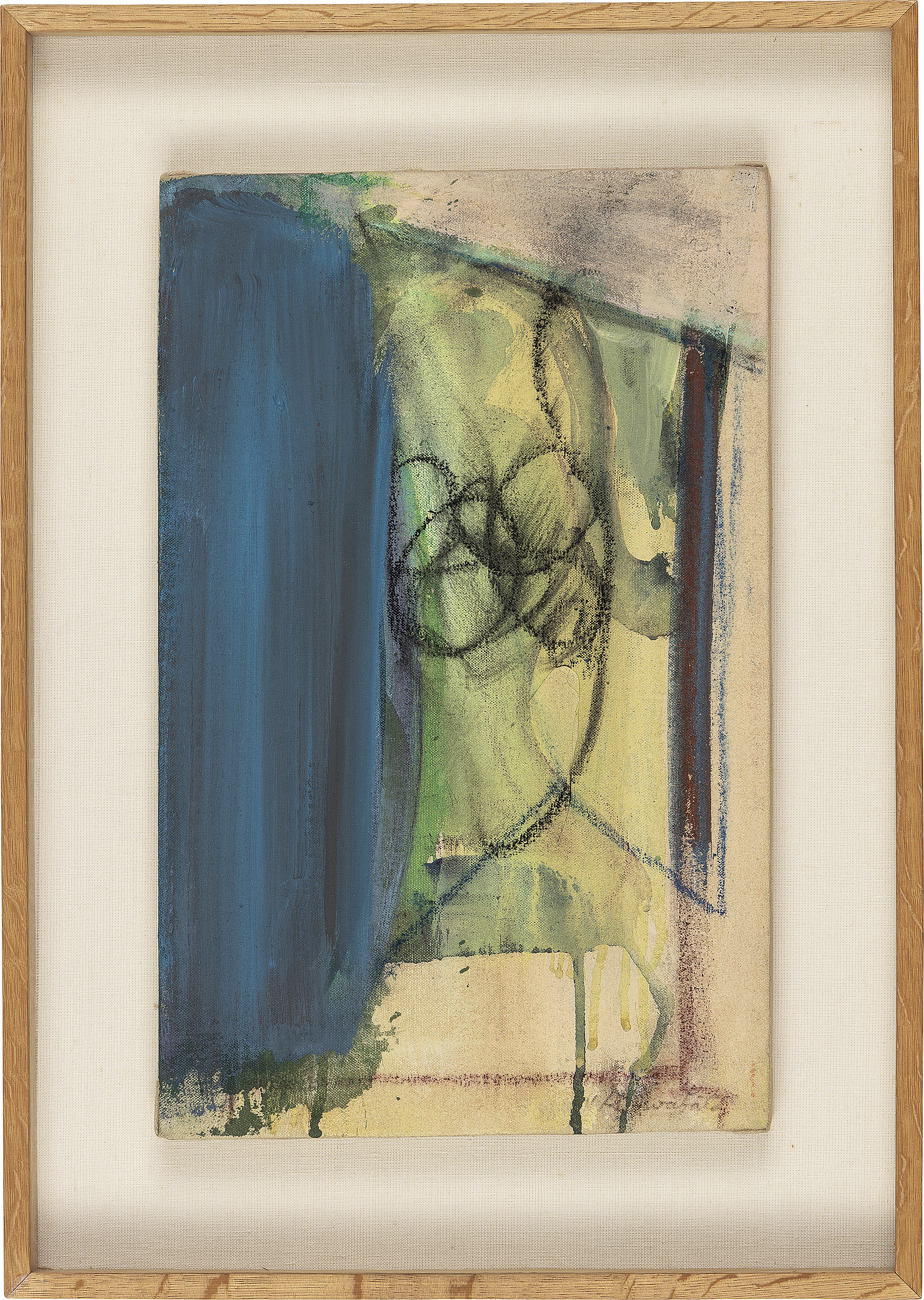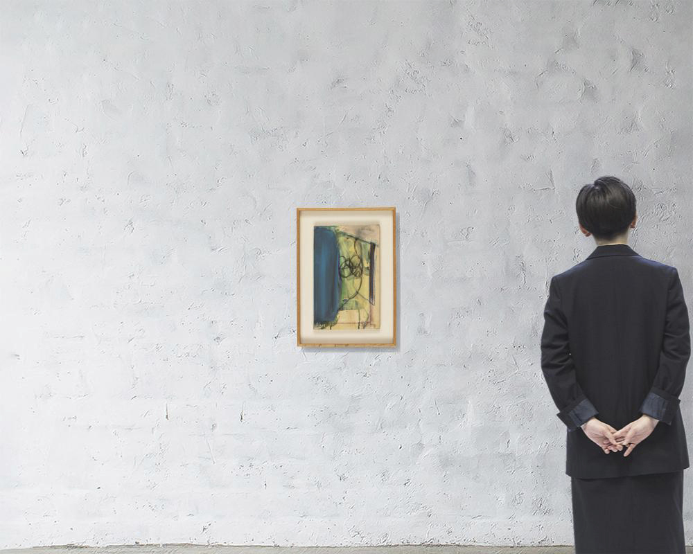 綿布にアクリル・パステル 40.5×25.5cm(変形6号) サイン有 画面全体に薄いヤケ 額付