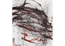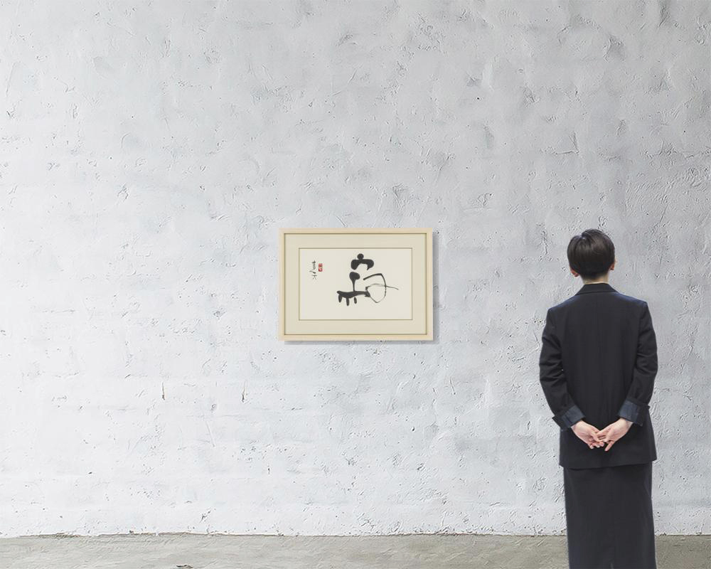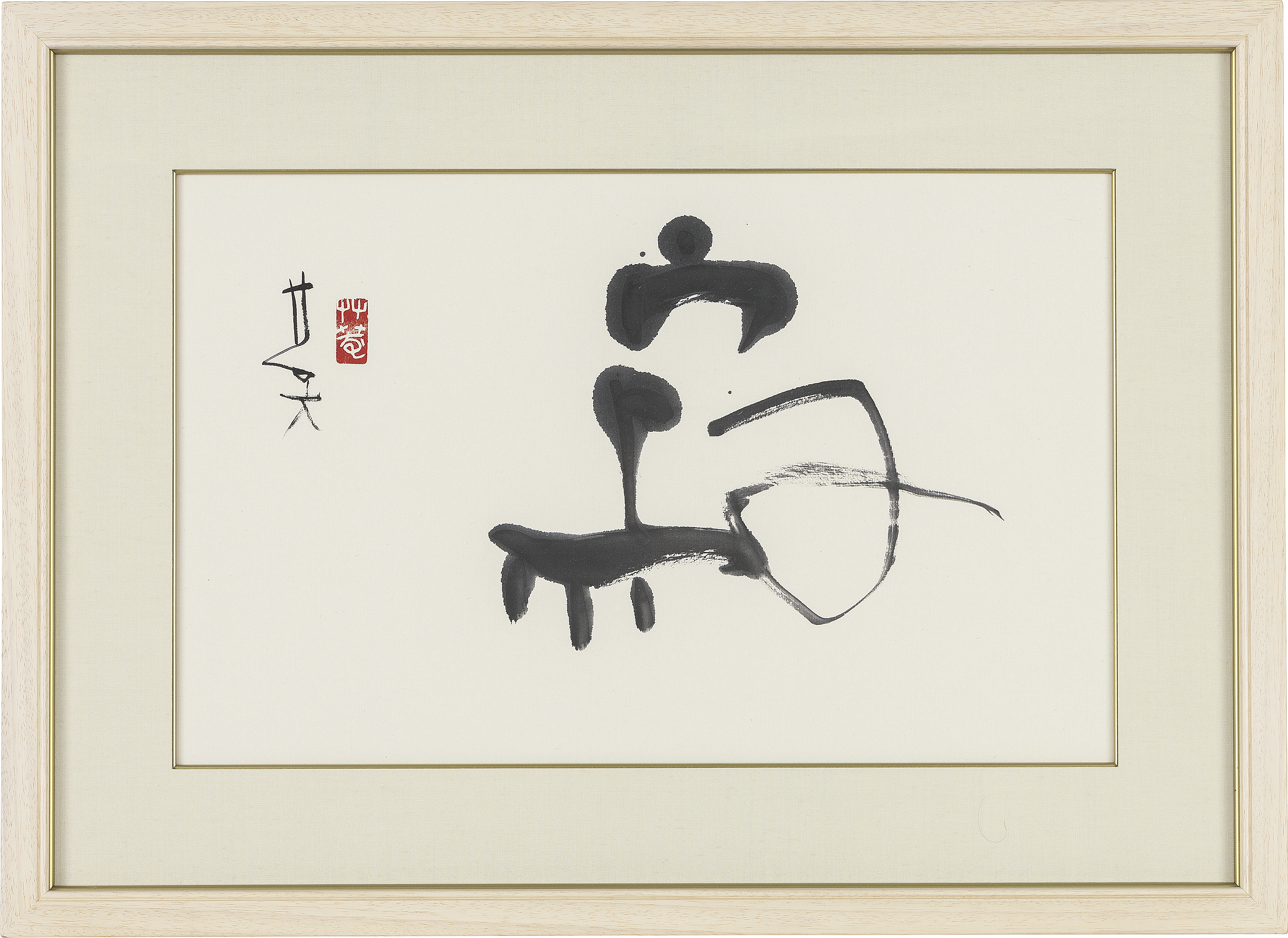 紙に墨 39.5×62.5cm 落款と印有 画面全体に薄いヤケ、数ヶ所に小さなシミ 額付