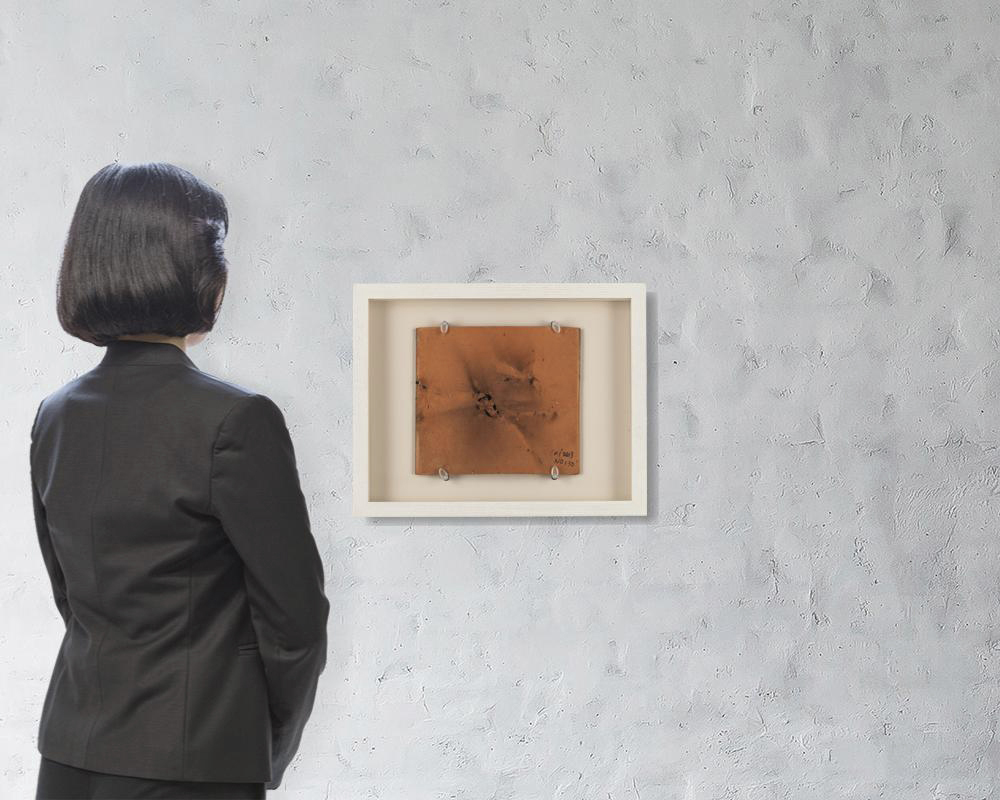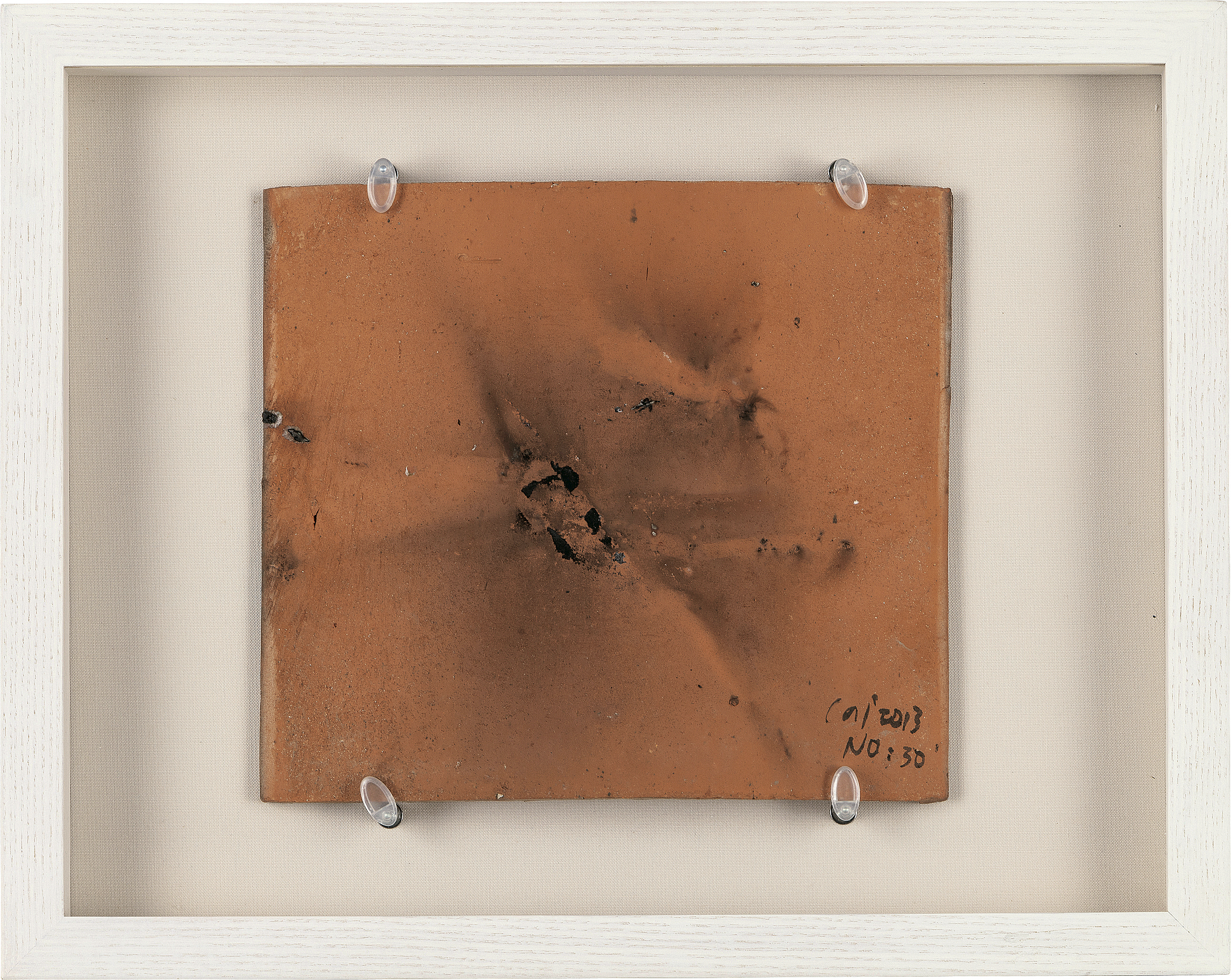 2013年 セラミックに火薬 22.5×25.5cm サイン有 作品裏にもサイン 作品縁沿い数ヶ所にわずかなコスレ、小さなカケ 額付