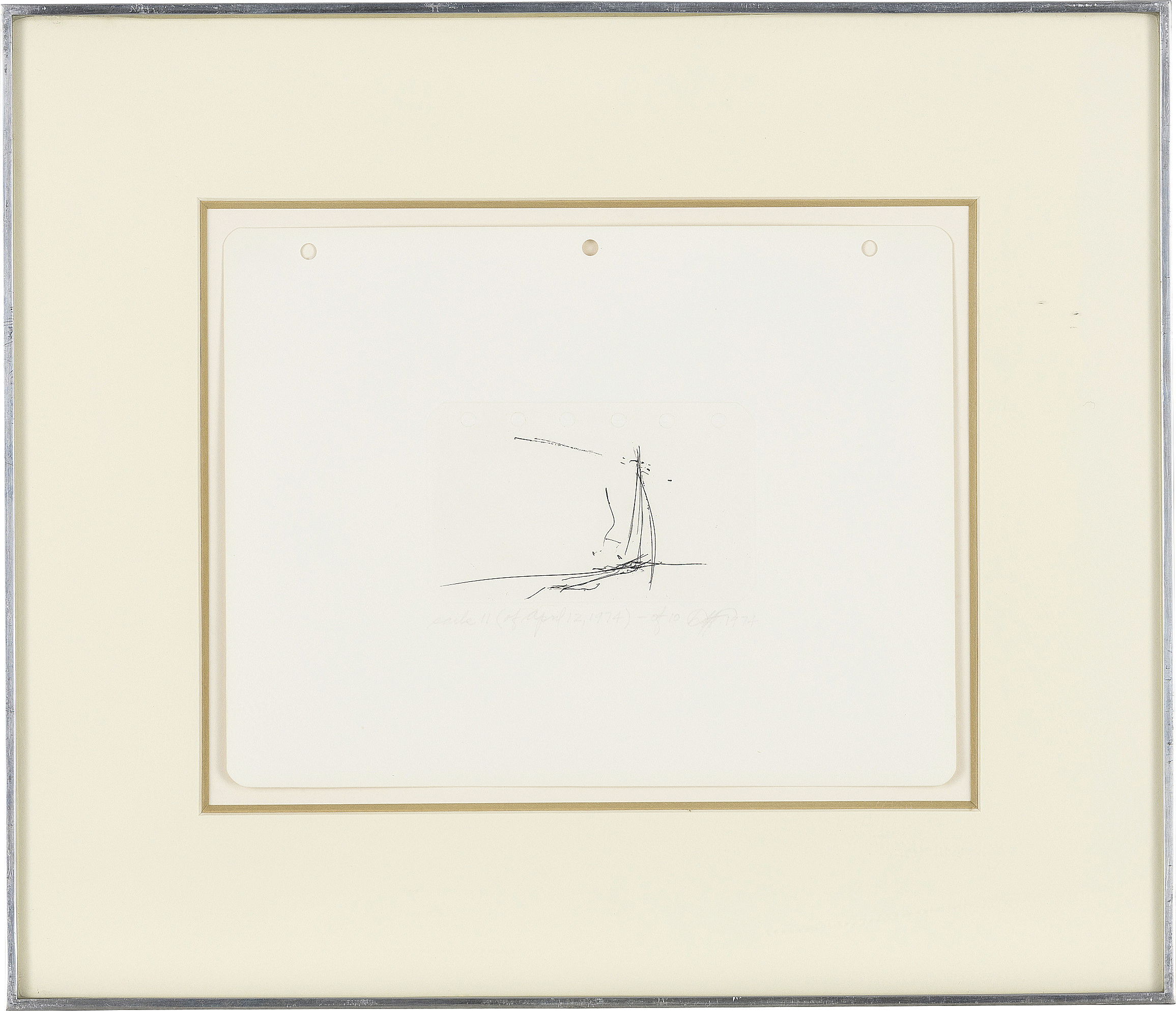 1974年 エッチング・パンチホールエンボス加工 7.5×12.5cm サイン有 マージンに「of 10」の記述 版面及びマージンに薄いヤケ マージン数ヶ所に小さなシミ 額付*