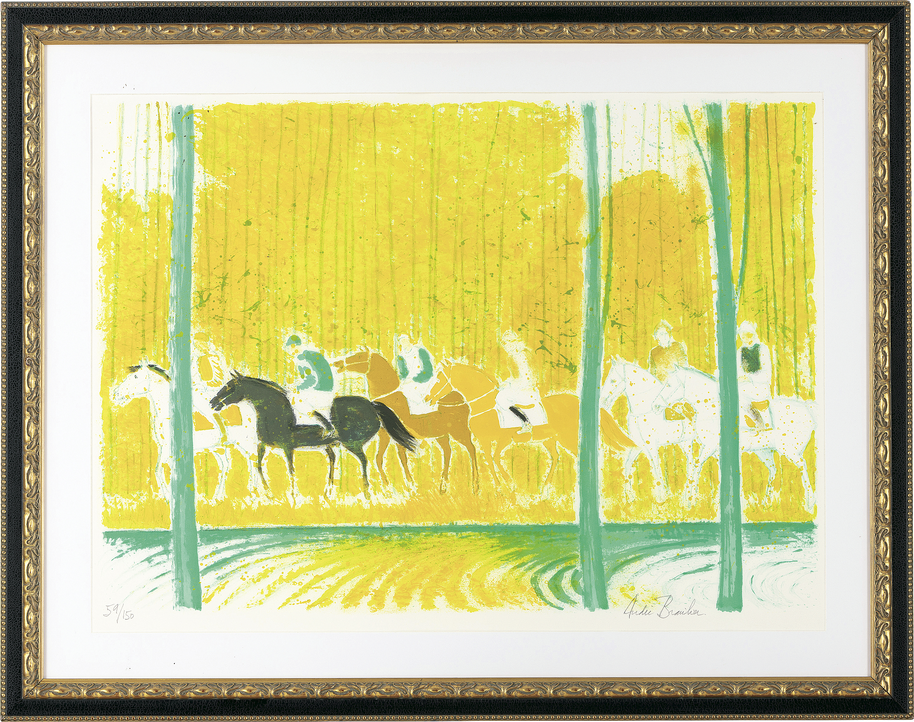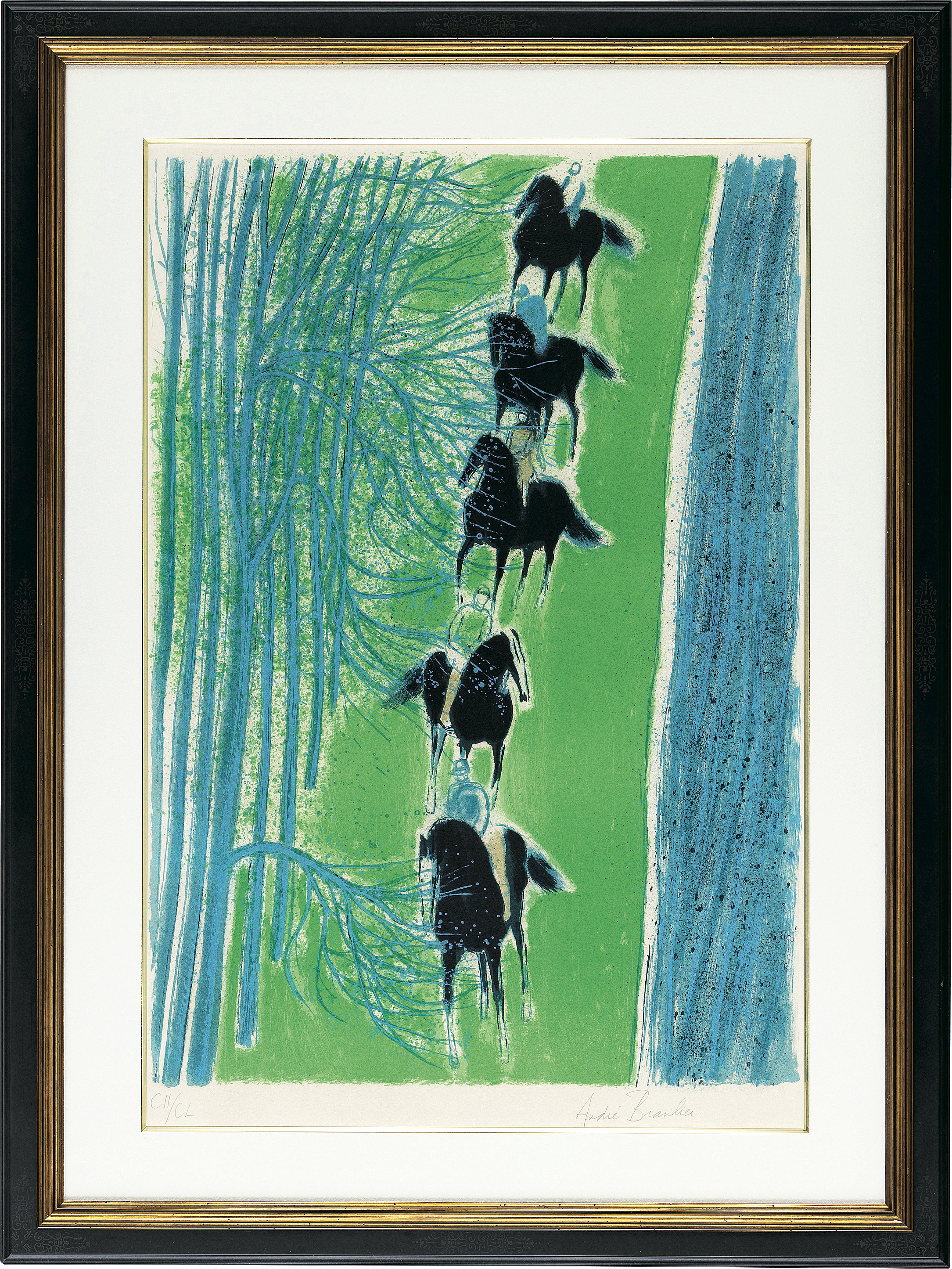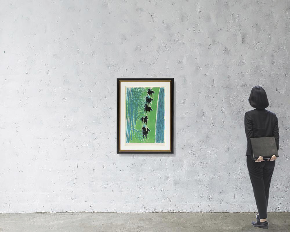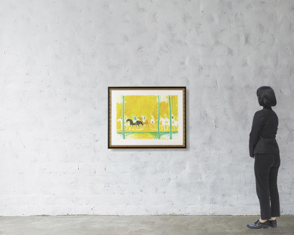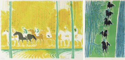 リトグラフ 70.5×102cm サイン有 ed.150 版面及びマージンに薄いヤケ もう1点は【シェール川沿いの騎馬行進】(P.149 1980年 リトグラフ 90×64cm サイン有 ed.CL 版面及びマージンにヤケ マージン1ヶ所に小さなシミ) 2点共額付*