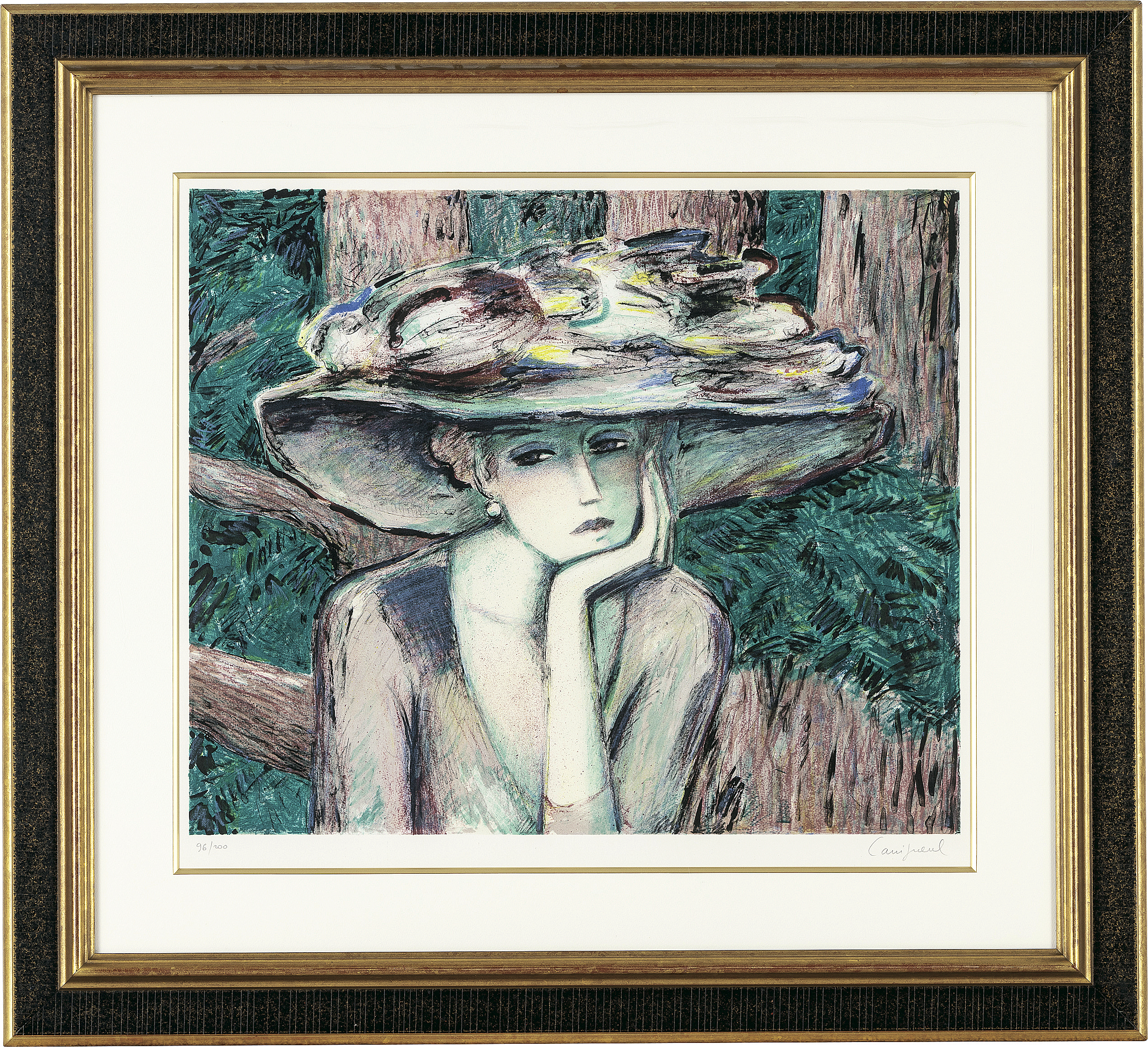 オーポンアートNo.472 2000年 リトグラフ 81×59cm サイン有 ed.200 版面及びマージンに薄いヤケ もう1点は【西洋杉】(M.76 1996年 57×68cm 版面及びマージンに薄いヤケ 他は表題と同データ) 2点共額付*