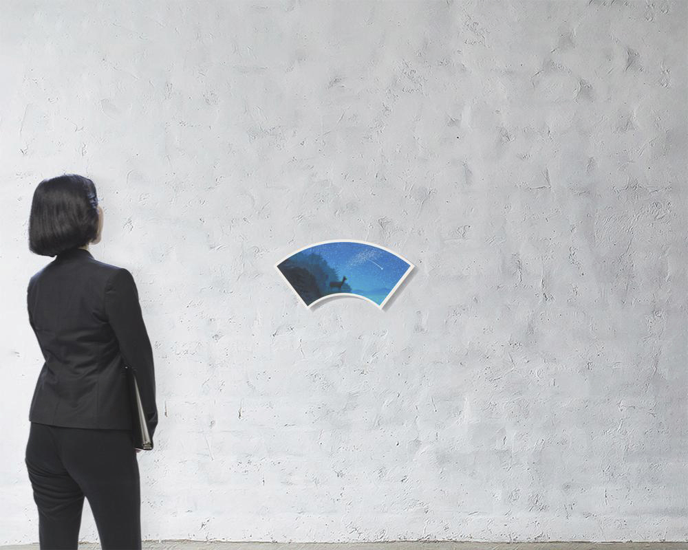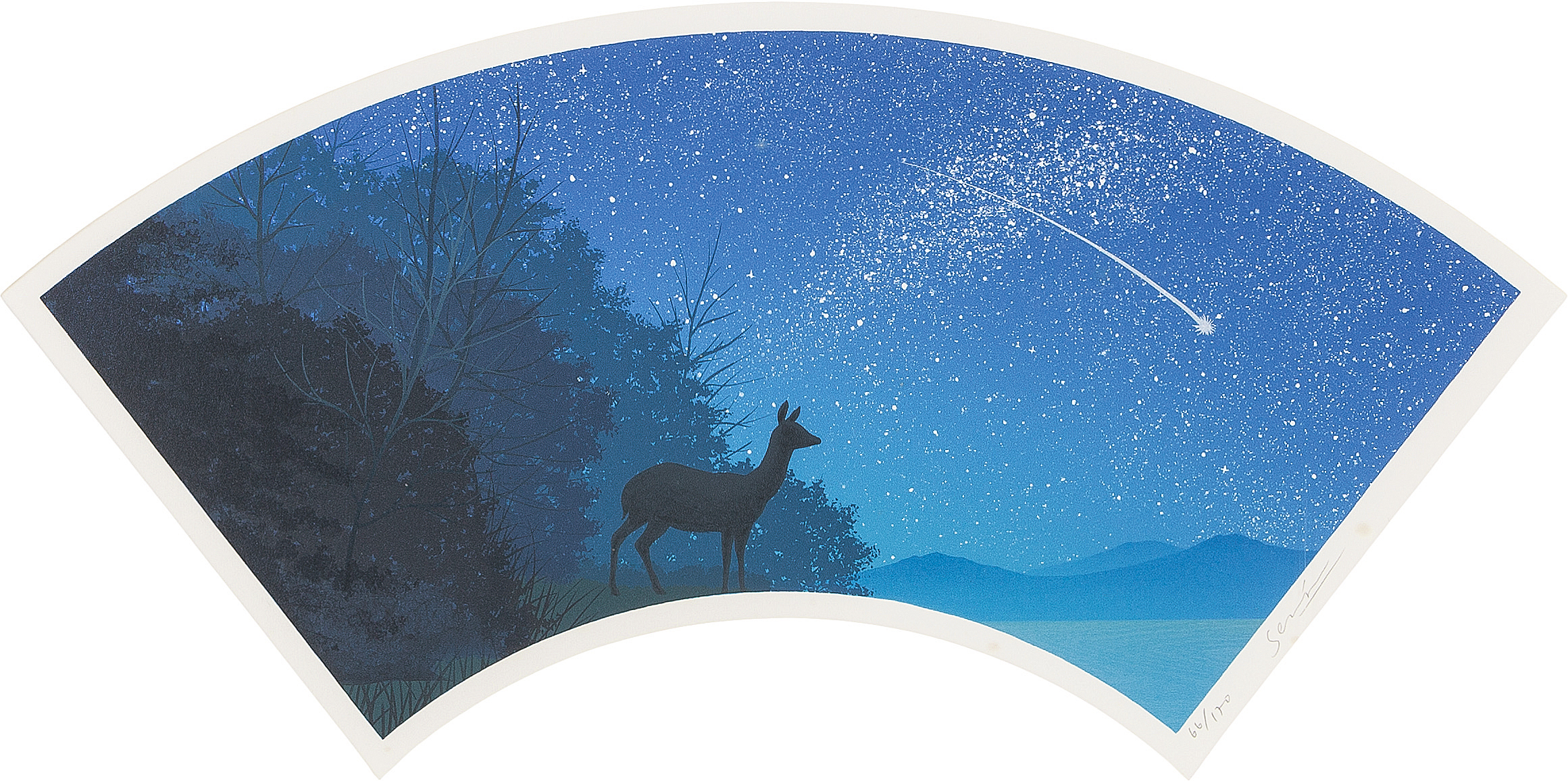 コンポジションNo.75 2000年 リトグラフ・シルクスクリーン 20×53(扇面型)cm サイン有 ed.170 シート全体に薄いヤケ 版面数ヶ所にシミ マージン及び裏面所々にシミ 額付
