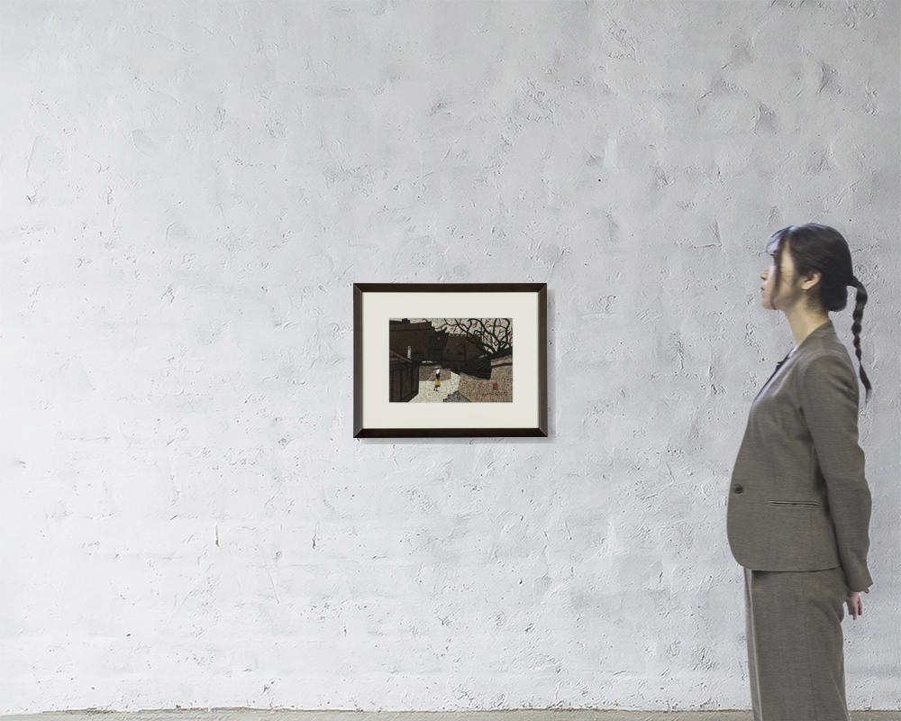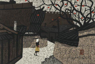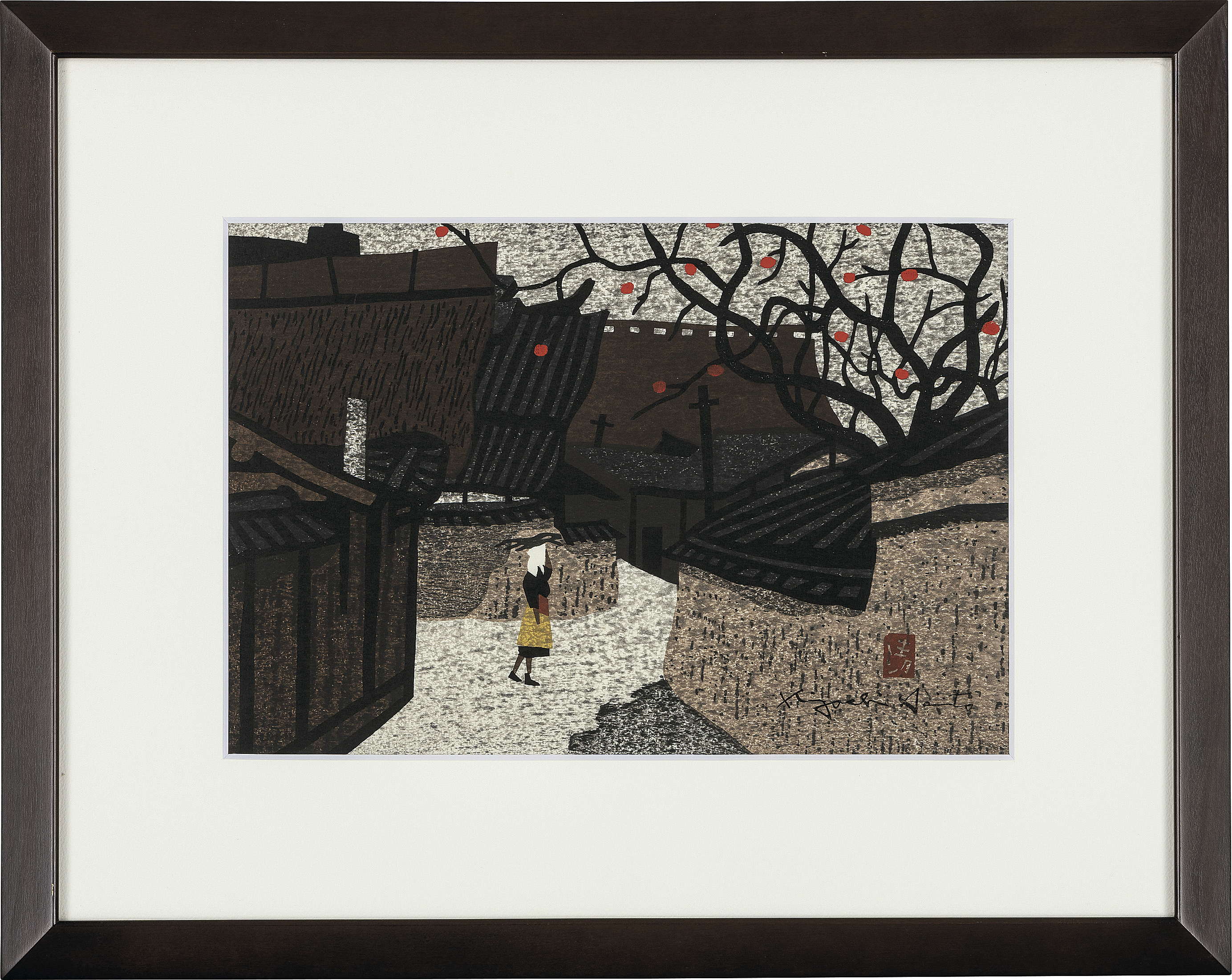 木版 27.5×38.5(シート)cm サインと印有 マージンカット シート全体に薄いヤケ 裏面数ヶ所に点状のシミ、二辺にテープの剥し跡 額付