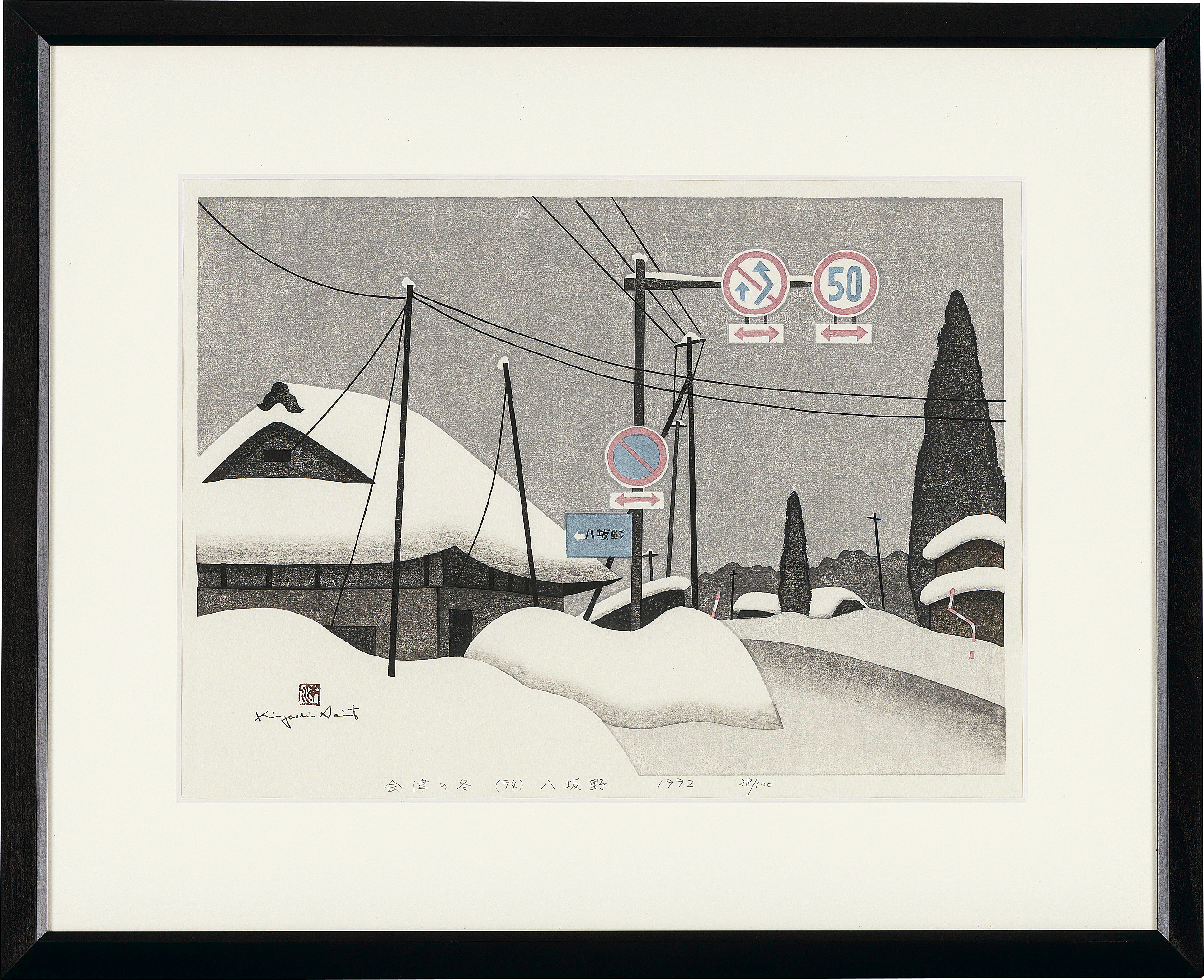 大塚巧藝社No.96 1992年 木版 37.9×52.7cm サインと印有 ed.100 シートサイズ 46.2×61cm シート全体に薄いヤケ、数ヶ所に小さなシミ、シワ 額付