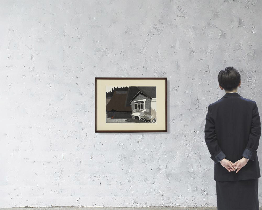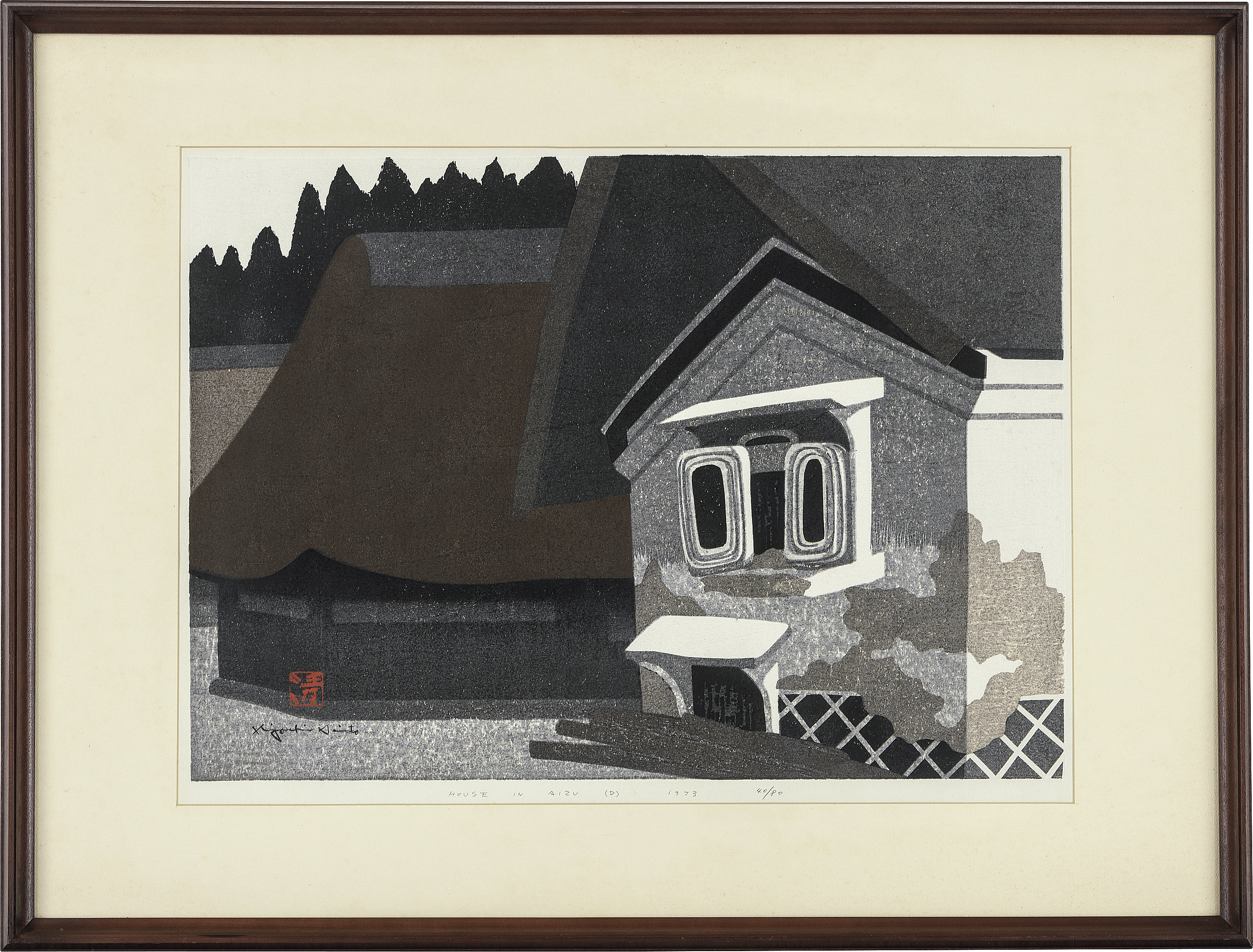 1973年 木版 38×53cm サインと印有 ed.80 シート全体に薄いヤケ マージン及び裏面数ヶ所にシミ、シワ 額付