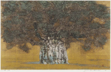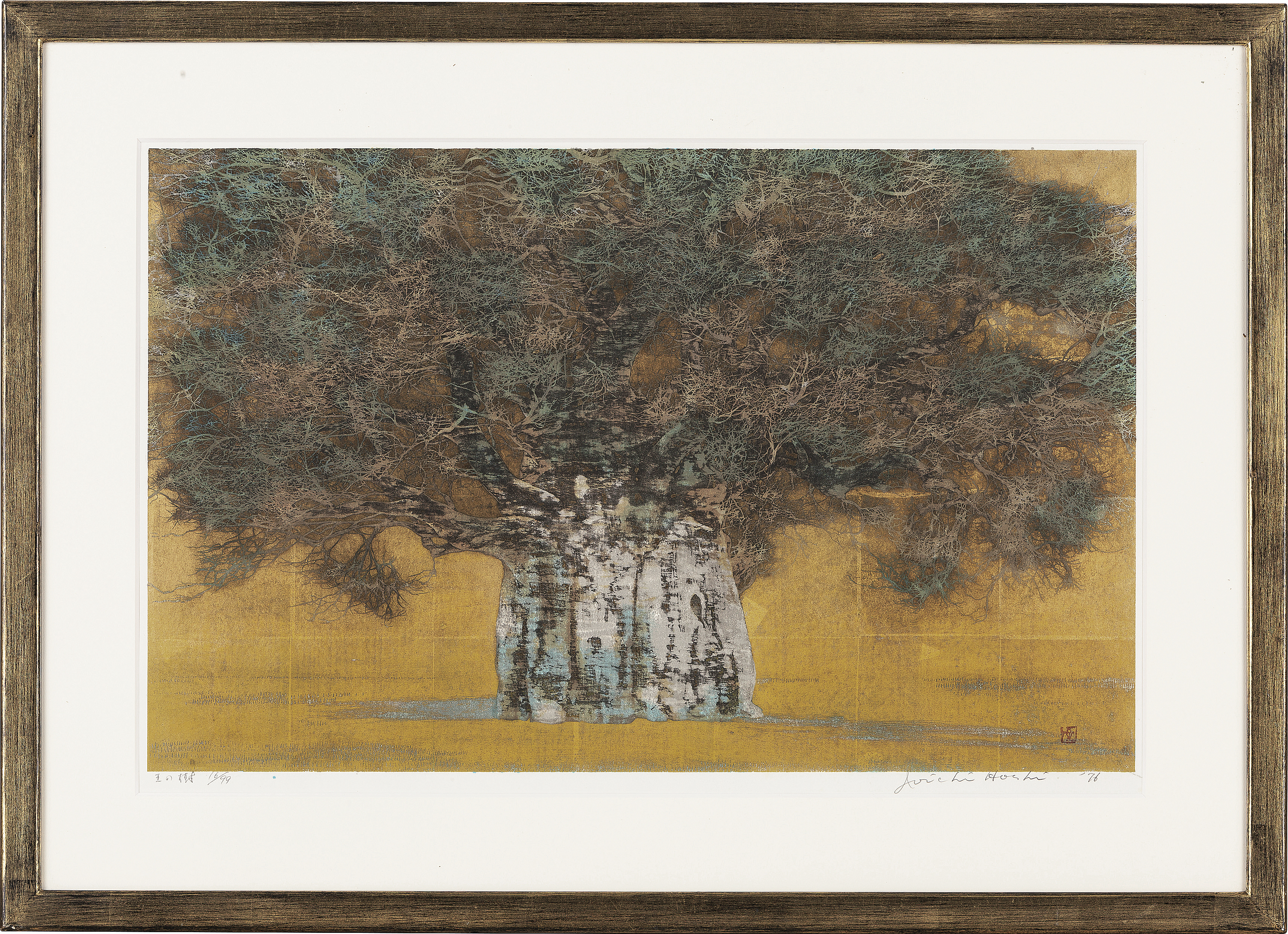 加藤画廊No.344 1976年 木版 55.5×88cm サインと印有 ed.99 シートサイズ 63.5×94.2cm マージン及び裏面に薄いヤケ、数ヶ所にシミ 裏面縁沿い数ヶ所にテープ貼付 版面は大体良好 額付