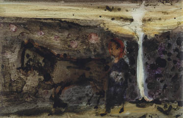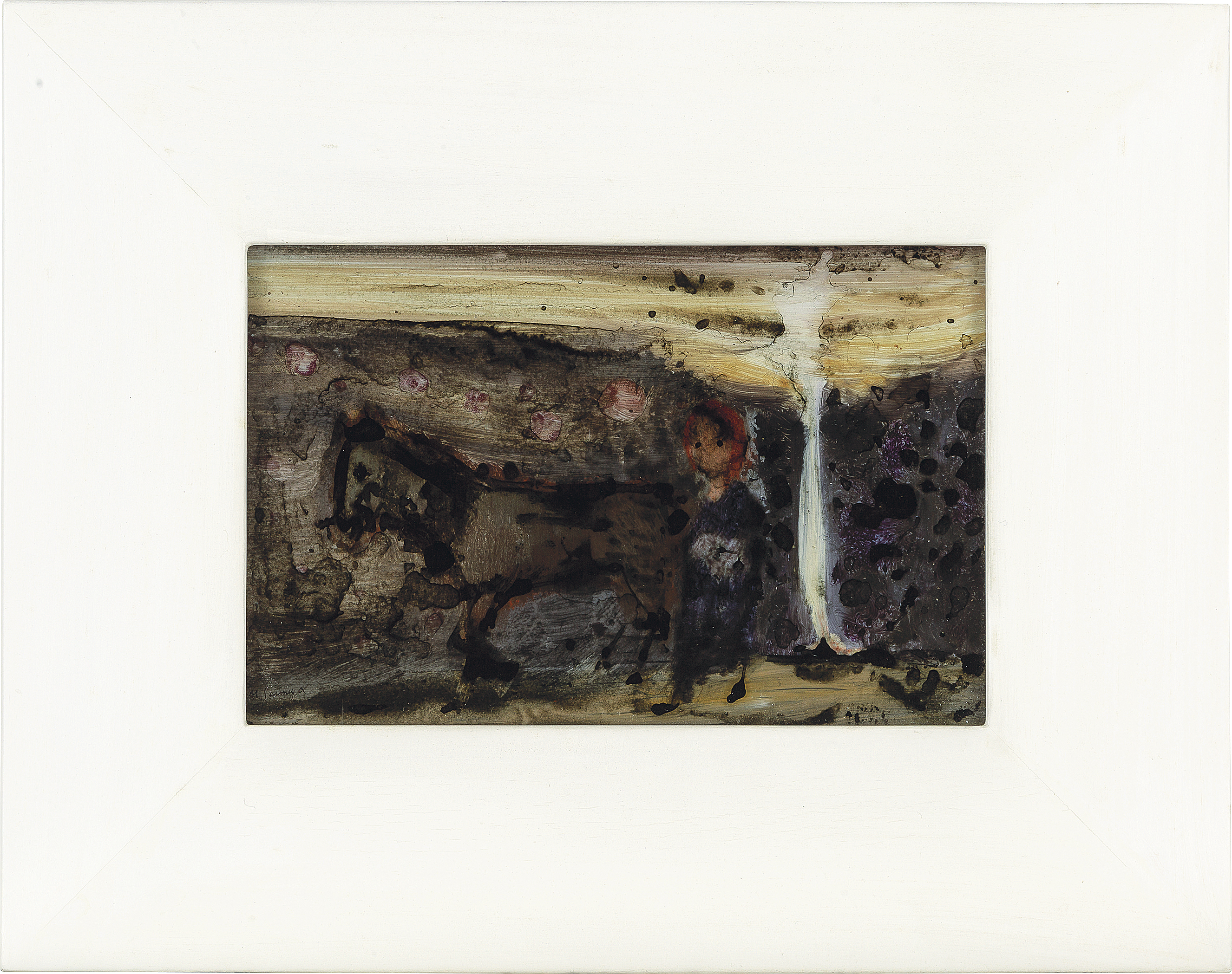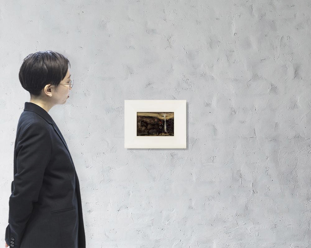 ガラス絵 11.8×18.2(額窓)cm サイン有 作品数ヶ所にコスレ 額付*