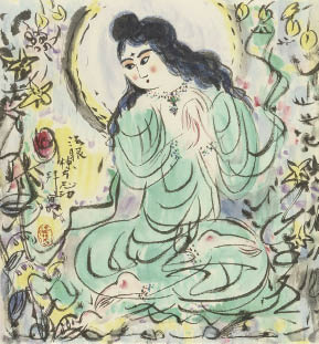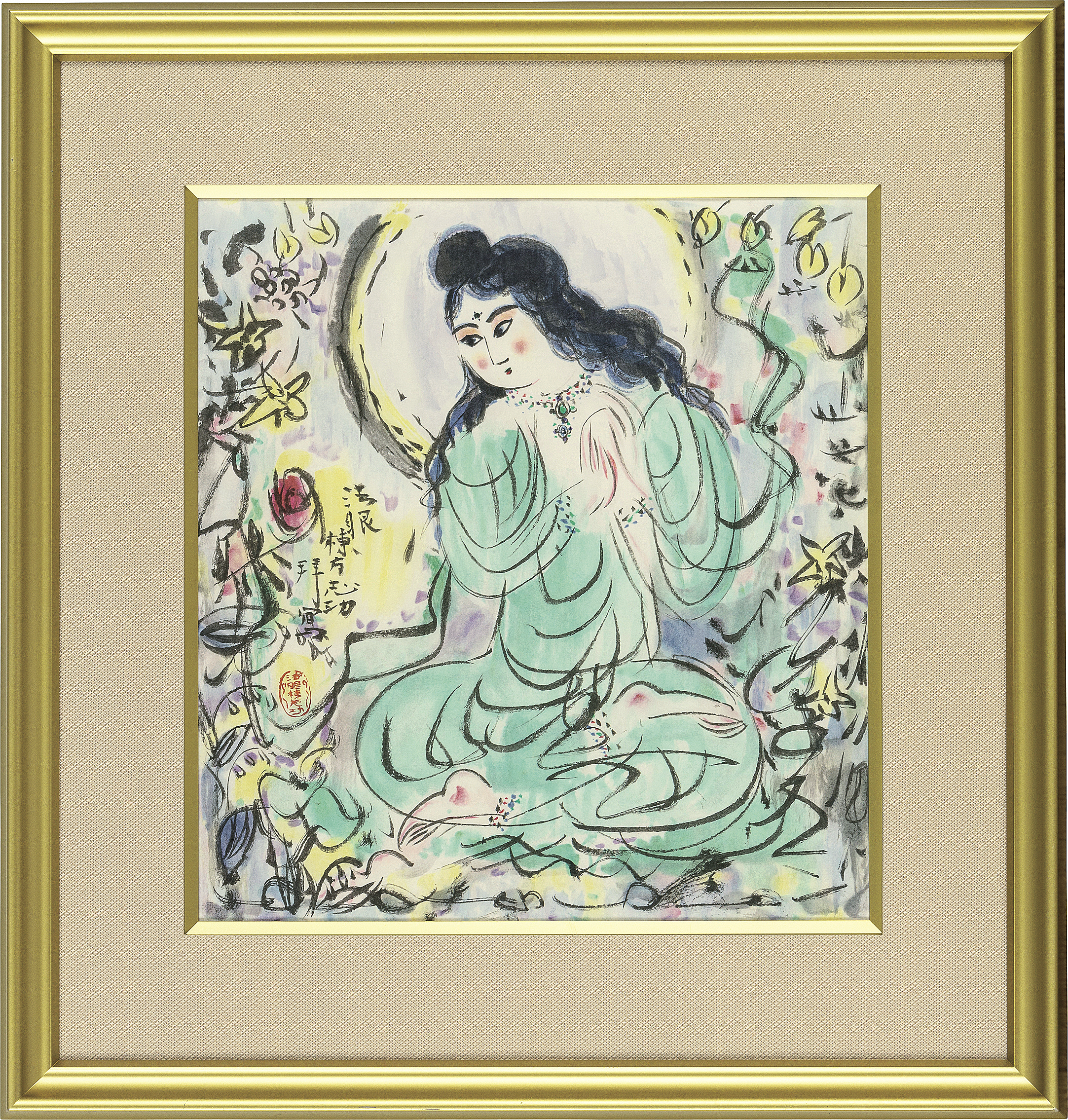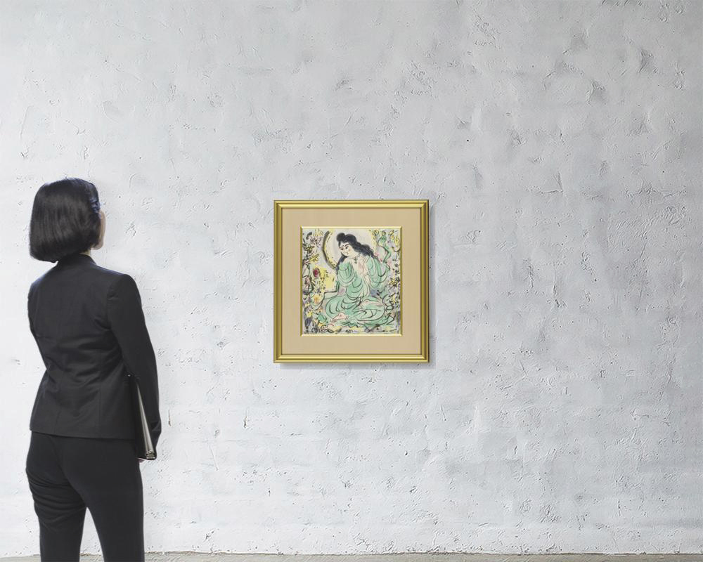 2007年 リトグラフ 41.5×38.5cm 落款と印共に版上 ed.EA ed.はマット下 「棟方板画館」監修シール シート全体に薄いヤケ、数ヶ所にシミ、シワ マージン1ヶ所に小さなヘコミ 額付