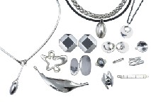 - ネックレス2点(共に刻印:925S 1点のトップ部分は取外し可能)、ペンダント2点(共に刻印:925S)、イヤリング2点(共に刻印:925S)、ブローチ3点(全てに刻印:925S 1点はペンダントトップとしても使用可能)、リング5点(全てに刻印:925S)、タイバー1点(刻印:925S)